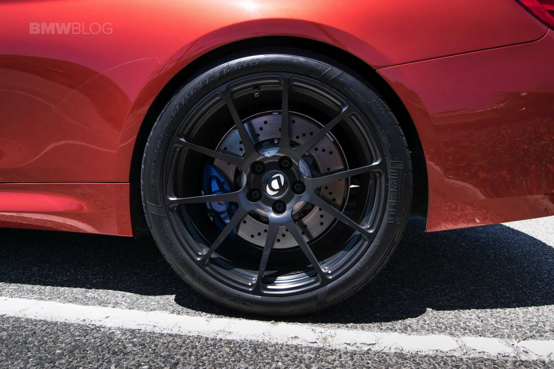 The standard M4 comes with 18×9 inch wheels and 275/40 tires on the rear. The car I was driving was running 20×9.5” wheels with 305/30 Pirelli P-Zero Corsa tires on the back, not helping in terms of comfort, but making a huge difference in terms of grip.