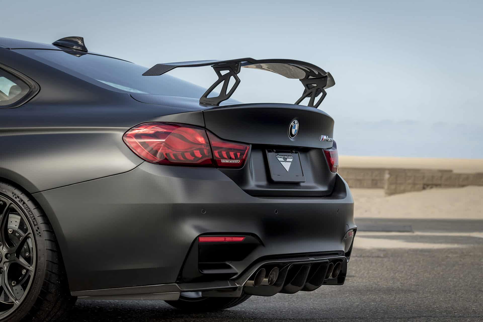 The M4 GTS – in its stock form – comes with a massive rear wing which provides great downforce on the track. However, the aftermarket industry is always looking to up it up a notch. This is exactly what happened when Vorsteiner decided to utilize their experience to create a more subtle, albeit gorgeous looking wing for this vehicle.