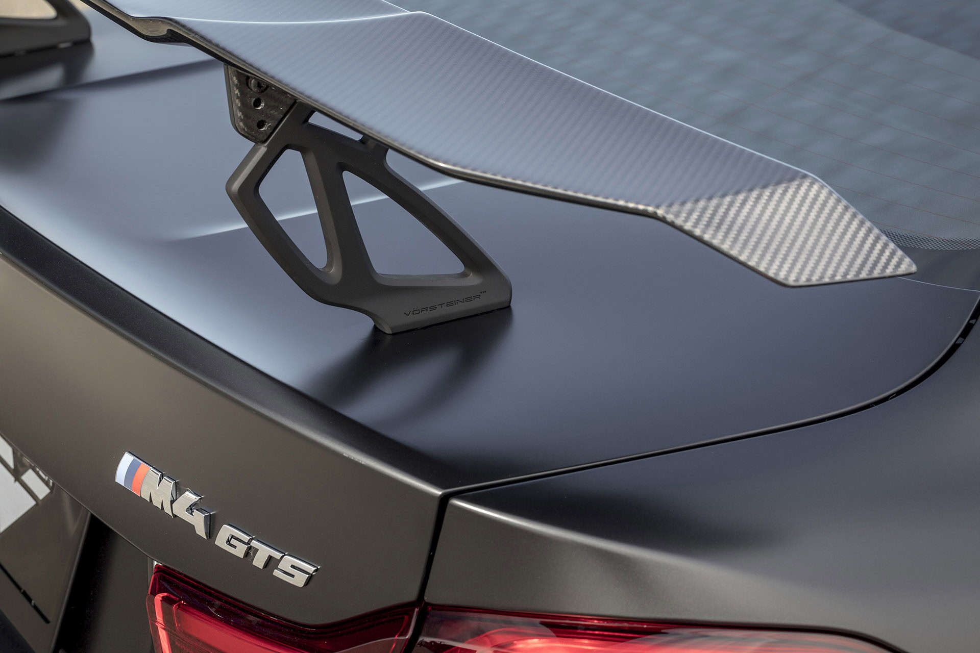 This Vorsteiner GTS-V rear wing comes with VRS GTS aluminum uprights, a rather unique and supercritical design (something taken from the aviation industry). The wing is made from pre-preg carbon fiber. In turn, this allows the wing to be lightweight, but also rigid. The wing is easily installed in the same OEM wing holes, allowing for a worry-free installation process. Furthermore, this particular M4 GTSÂ features a complete Vorsteiner VRS aero package and their V-FF 106 FlowForged wheels.