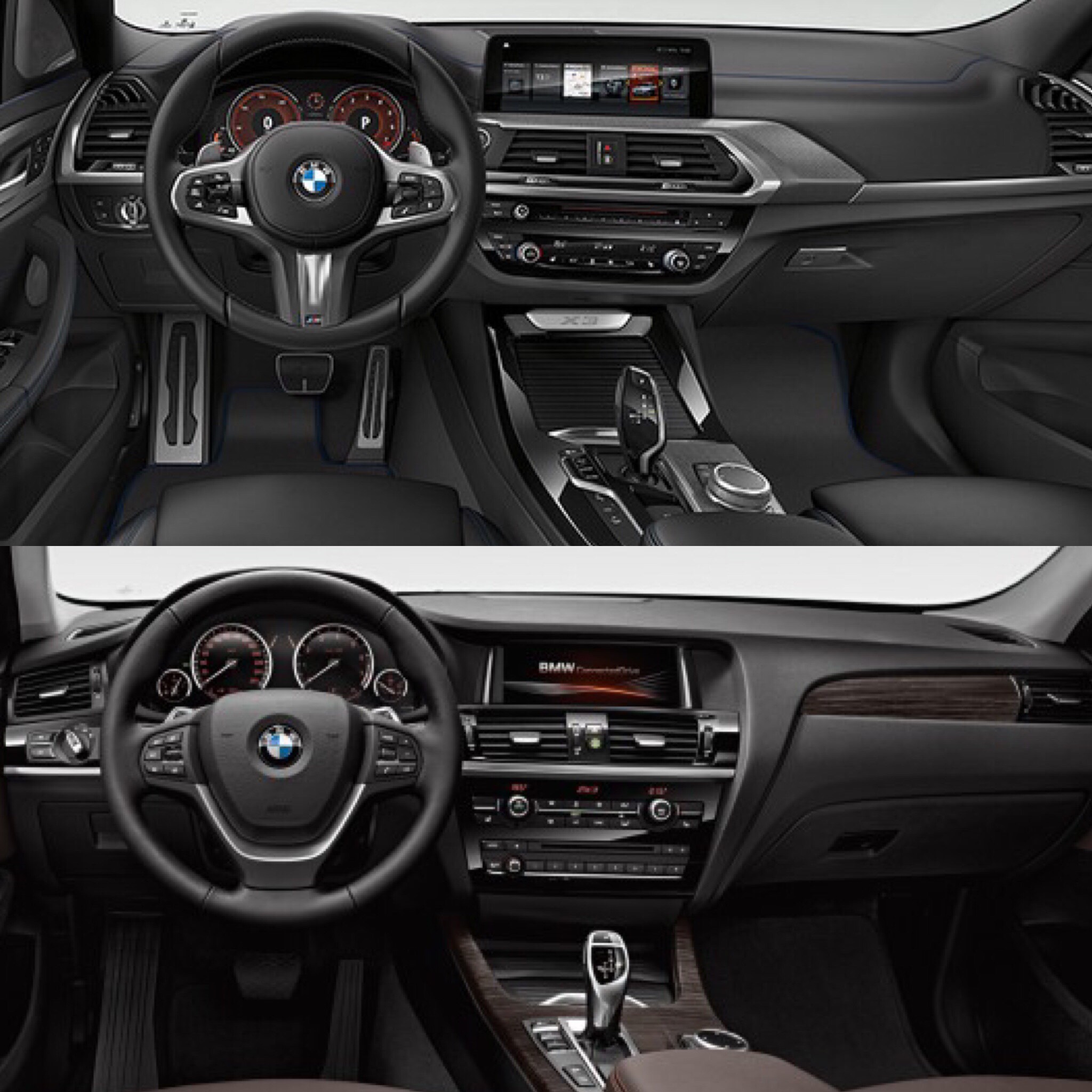 On the inside, the move upmarket is far more dramatic. BMW really upped the luxury-factor for the new X3 and has added quite a lot of interesting geometry. There are a ton of angles and curves in the new X3’s cabin, which can either look cool or busy, depending on your tastes. It also gets digital gauges and all of BMW’s latest technology. Oh, and it says “X3” right above that center cubby, in case you forget which car you’re driving…