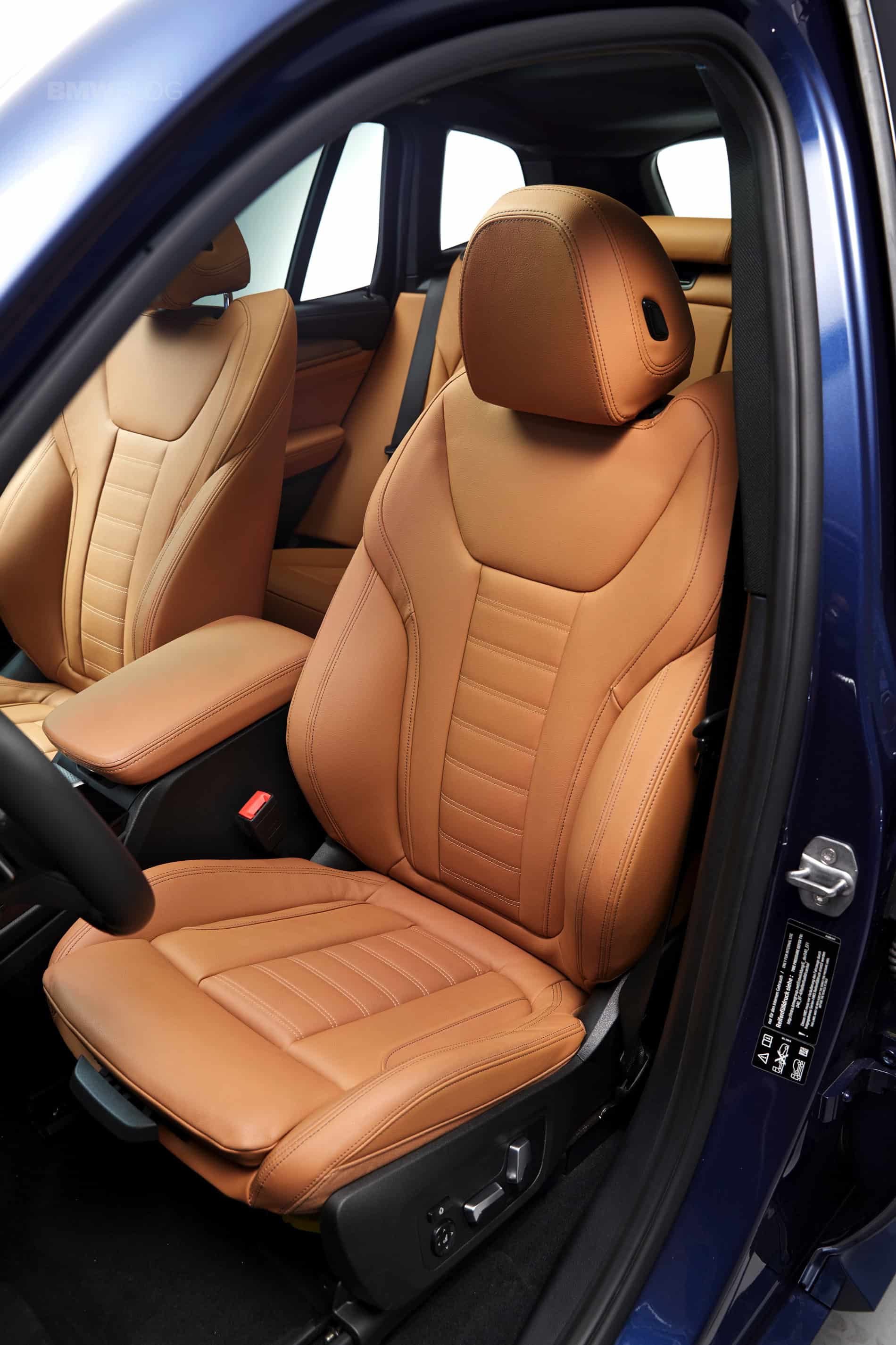 The interior of the all-new BMW X3 follows BMW tradition with its driver-focused and ergonomically optimized cockpit layout and carries over many aspects of the car’s exterior design. For instance, hexagonal forms and precise, sloping edges also play a central role in the interior. The interior as a whole displays exceptional material quality, fit, and finish, with carefully thought ergonomics.