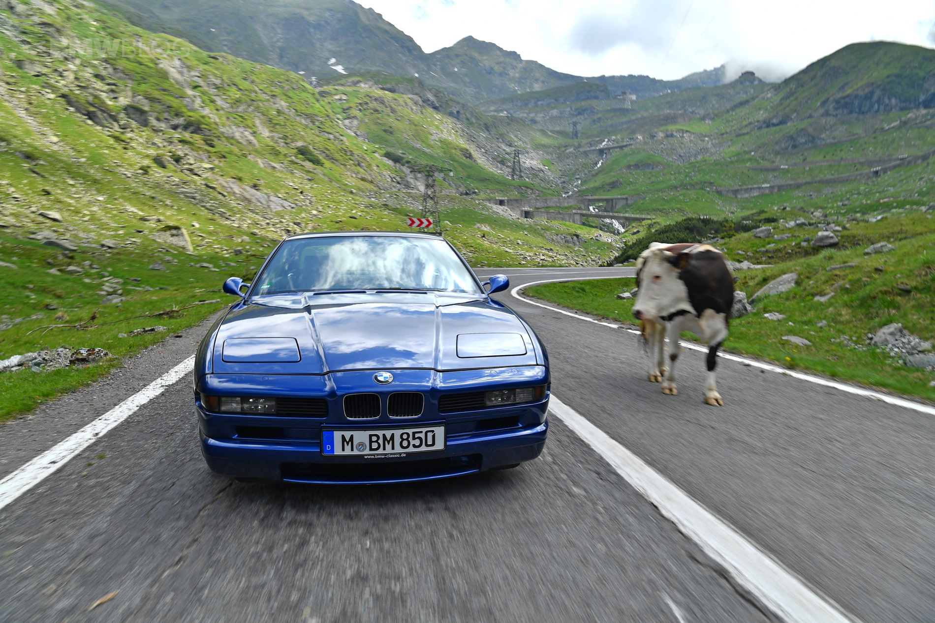 One of those fine 850CSi models went to Romania last week and spent some time through the curvy roads of the Transfagarasan Road, a bucket list driving road according to Top Gear. The Transfăgărășan (trans (over, across) + Făgăraș) or DN7C is the second-highest paved road in Romania. Also known as Ceaușescu’s Folly, it was built as a strategic military route, the 90 km of twists and turns run north to south across the tallest sections of the Southern Carpathians, between the highest peak in the country, Moldoveanu, and the second highest, Negoiu. The road connects the historic regions of Transylvania and Wallachia, and the cities of Sibiu and Pitești.