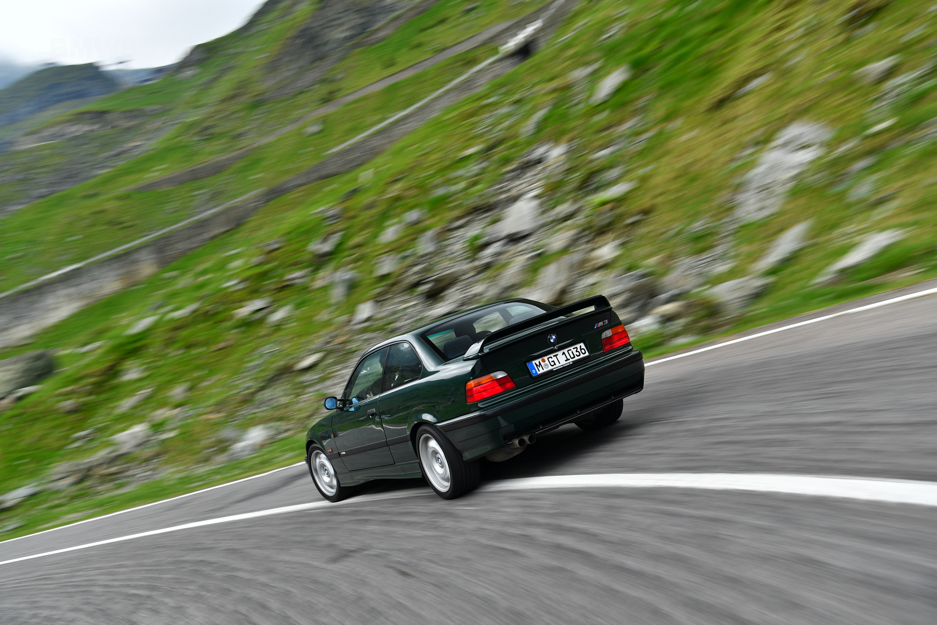 From the outside, the GT is really most distinguishable from the different front splitter but, other than that, it looks about the same as a standard E36 M3. The inside is considerably different, though, with new seats that look superb, carbon fiber trim and some cool “BMW Motorsport International” badges.