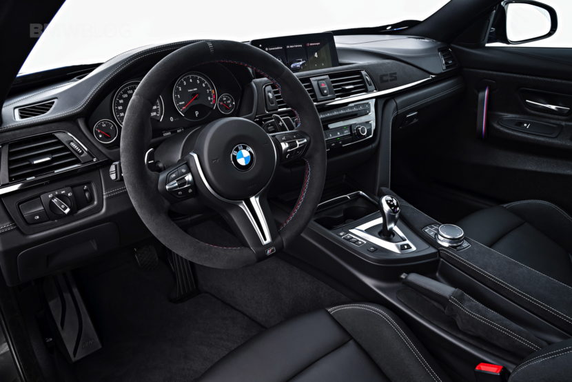 To save some weight over the BMW M4 Competition Package, the M4 CS gets some of the lightweight tech from its bigger brother, the M4 GTS. So it gets that car’s carbon fiber hood, carbon fiber interior door panels and a more stripped out interior. All of that makes it lighter than the M4 Comp Pack and more exciting.