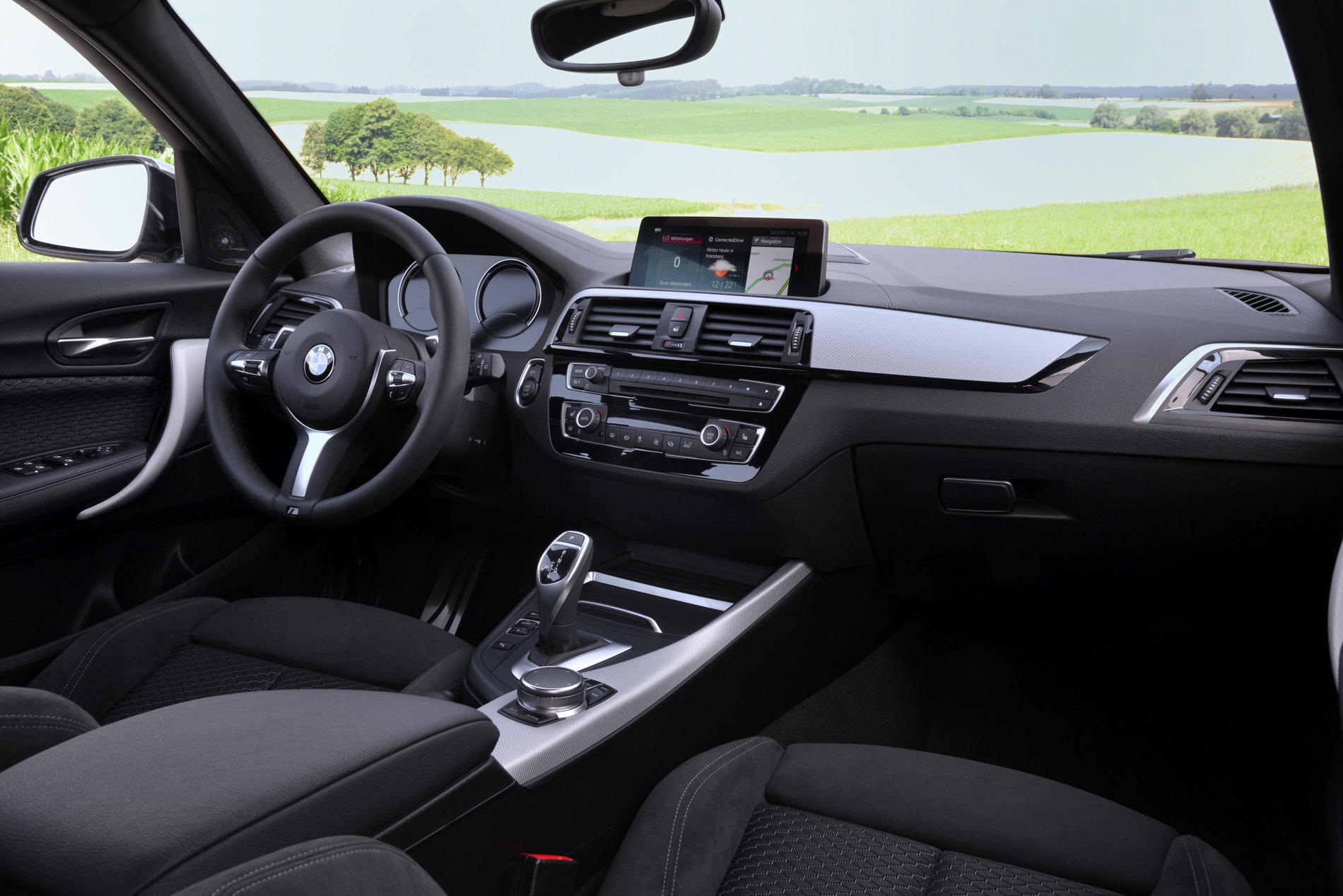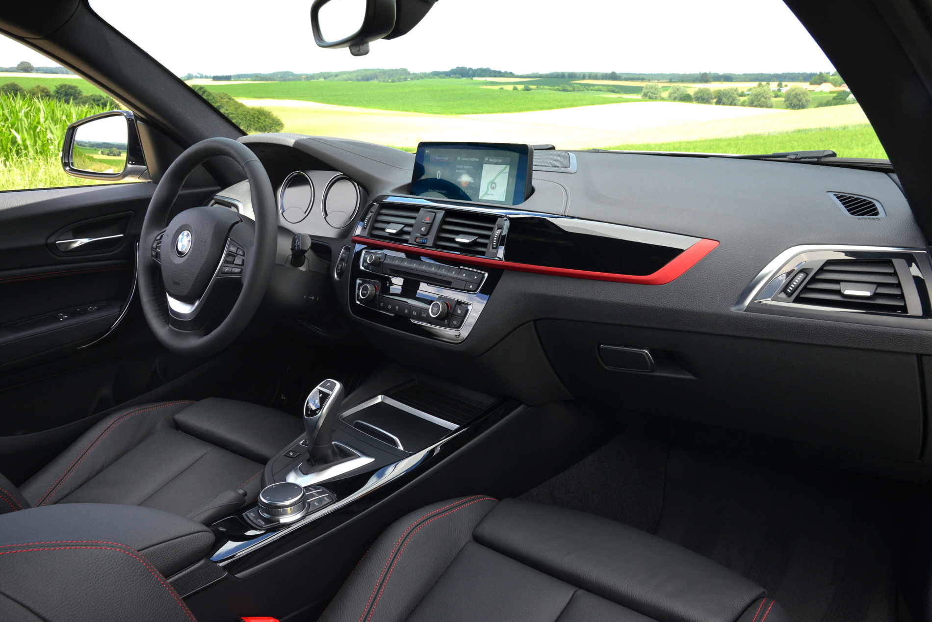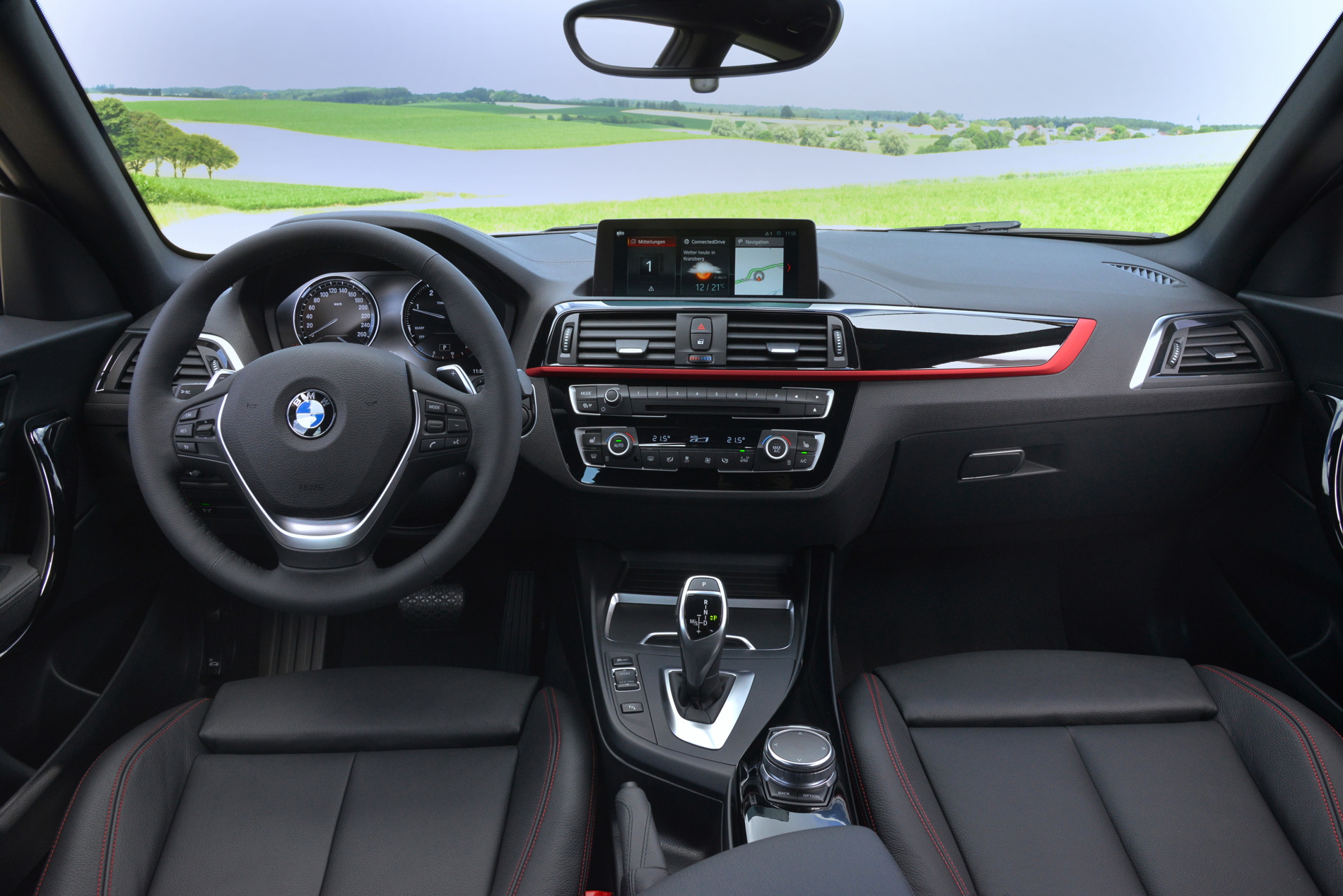 The biggest news comes inside, though, as the 1 Series gets the same cabin upgrades as the new 2 Series Coupe and Convertible. So the main dash trim starts from the center air vent stack and moves outward, rather than starting from the outer air vent and moving inward. It also gets BMW’s new iDrive infotainment system, featuring the new tile-based design and touchscreen capability, if the premium nav system is optioned. The instrument cluster has also been updated to the same on that the 2 Series got, which looks a bit more premium and upscale.