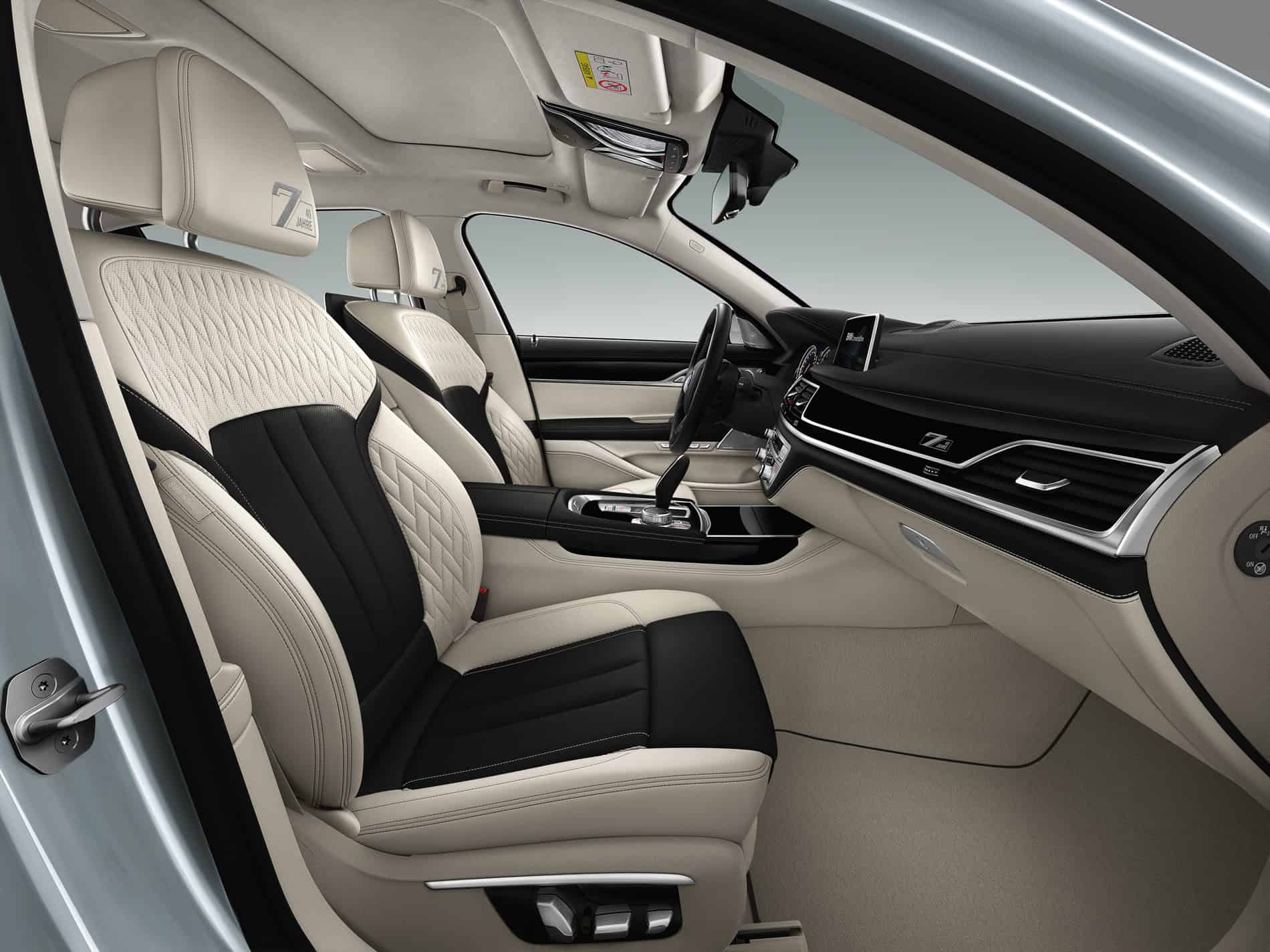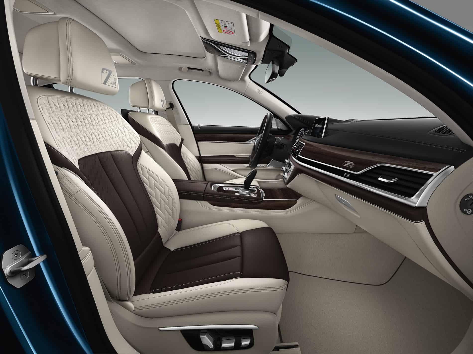 There is a choice of two variants – The exclusive BMW Individual colour Frozen Silver metallic and the BMW Individual body colour Petrol Mica metallic which takes up on the tradition of discreet and elegant shades of blue used on the bodywork of BMW luxury sedans. Both colors offer unique iridescent effects and a unique impression of depth. The colors, which are applied in a particularly elaborate process, come in conjunction with the M Aerodynamics Package, the BMW high-gloss Shadow Line and 20-inch BMW Individual light alloy wheels in a V spoke design. A further exterior design feature is the edition signet designed exclusively for the model anniversary and located on the B pillar coverings and on the door sills.
