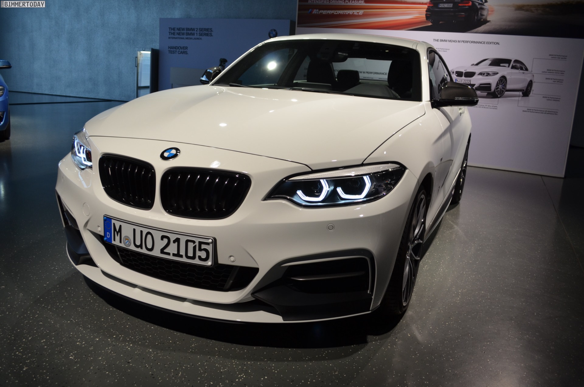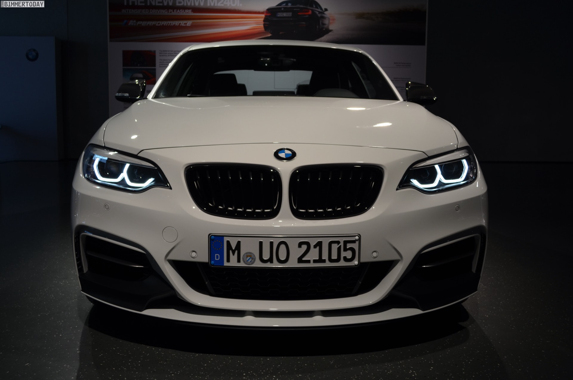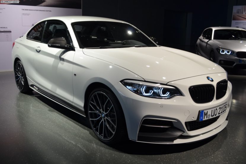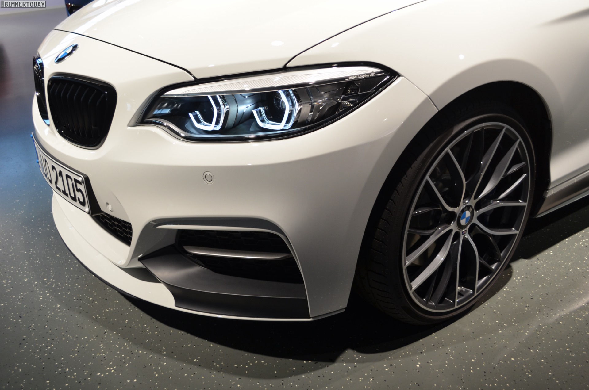 With the help of BMW M Performance, the 2017 BMW M240i Facelift is also being upgraded. The tuning accessories remain unchanged in their sizes, but profit from the sharpened profile of the refreshed 2 Series. Our photos show a BMW M240i Coupe with the new LED headlights, which provide a fresh look with hexagonal and open daytime running lights at the upper edge, and make the compact sportsman look much more modern.