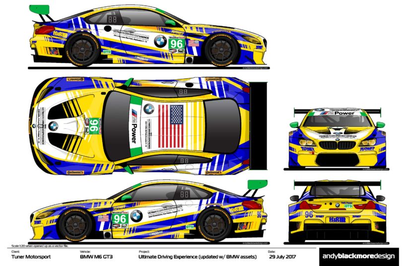 The familiar  blue and yellow livery of the No. 96 Turner Motorsport BMW M6 GTD racing car will see a new addition for the upcoming IMSA WeatherTech SportsCar championship races at Road America and Virginia International Raceway as the stalwart BMW NA customer racing team partners with BMW of North America to race in support of the BMW Ultimate Driving Experience.