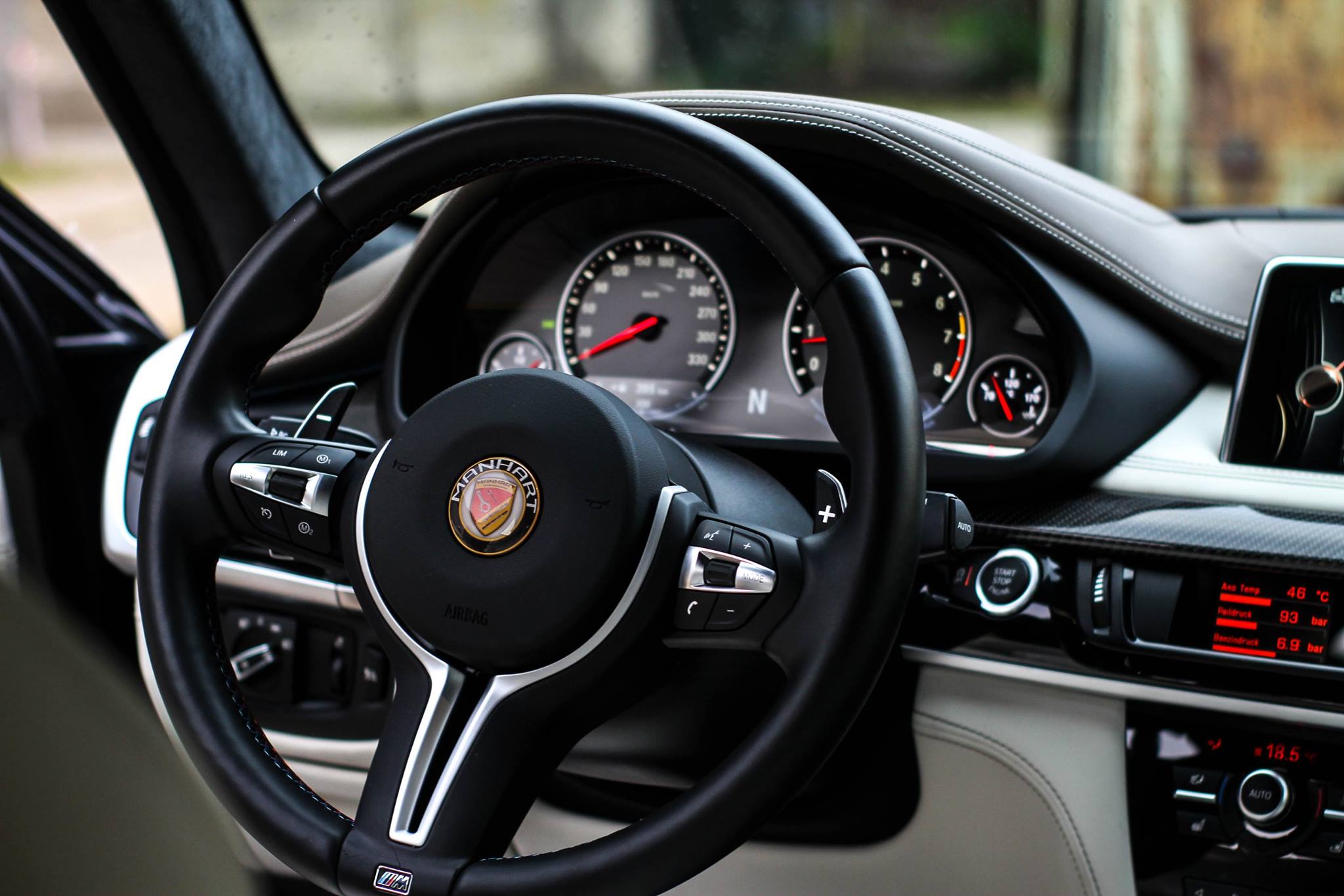 Inside the cabin we can notice the new Manhart badge replacing the blue and white roundel in the middle of the steering wheel while the dash now has an Awron gauge replacing one of the vents. That’s definitely going to come in handy as the working parameters of the car were surely changed and quite extensively so.