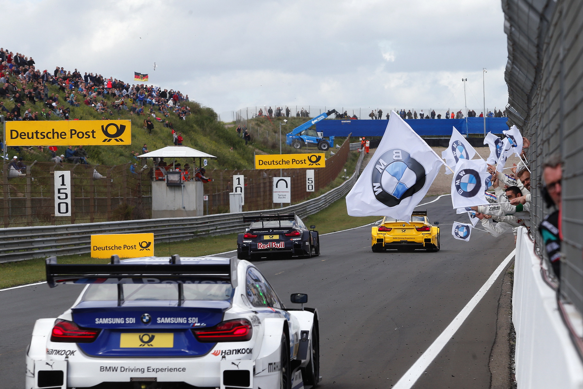The 20-minute session began in sunshine, and the BMW drivers went well in the first half of qualifying. Timo Glock set the fastest time of 1:27.823 minutes in the DEUTSCHE POST BMW M4 DTM, followed by fellow BMW drivers Augusto Farfus (Shell BMW M4 DTM), Marco Wittmann (Red Bull BMW M4 DTM) and Maxime Martin (SAMSUNG BMW M4 DTM). A shower over the circuit in the dunes shortly after the halfway point of qualifying prevented anyone from improving their lap times, nobody therefore able to deny Glock his third pole position in the DTM. First, second, third and fourth place on the grid represents the best qualifying result for the BMW drivers since the Saturday race at Oschersleben in 2015. Tom Blomqvist also makes it into the top ten, qualifying seventh in the BMW Driving Experience M4 DTM. Bruno Spengler starts his 150th DTM race from 17th place.