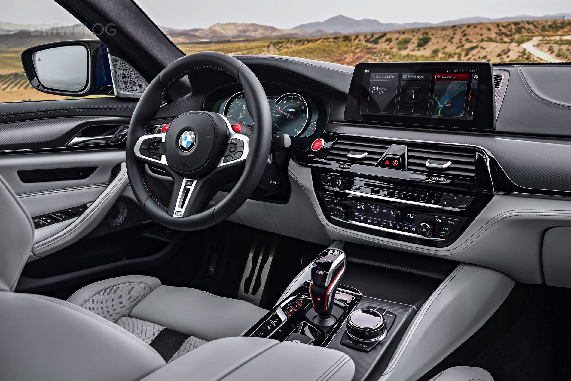 Of course, there will be some very cool specific colors available for the new BMW M5. Chief of which can be seen here, the Marina Bay Blue Metallic. It’s a stunning blue that suits the new M5 perfectly. It’s the color of choice for us, here.