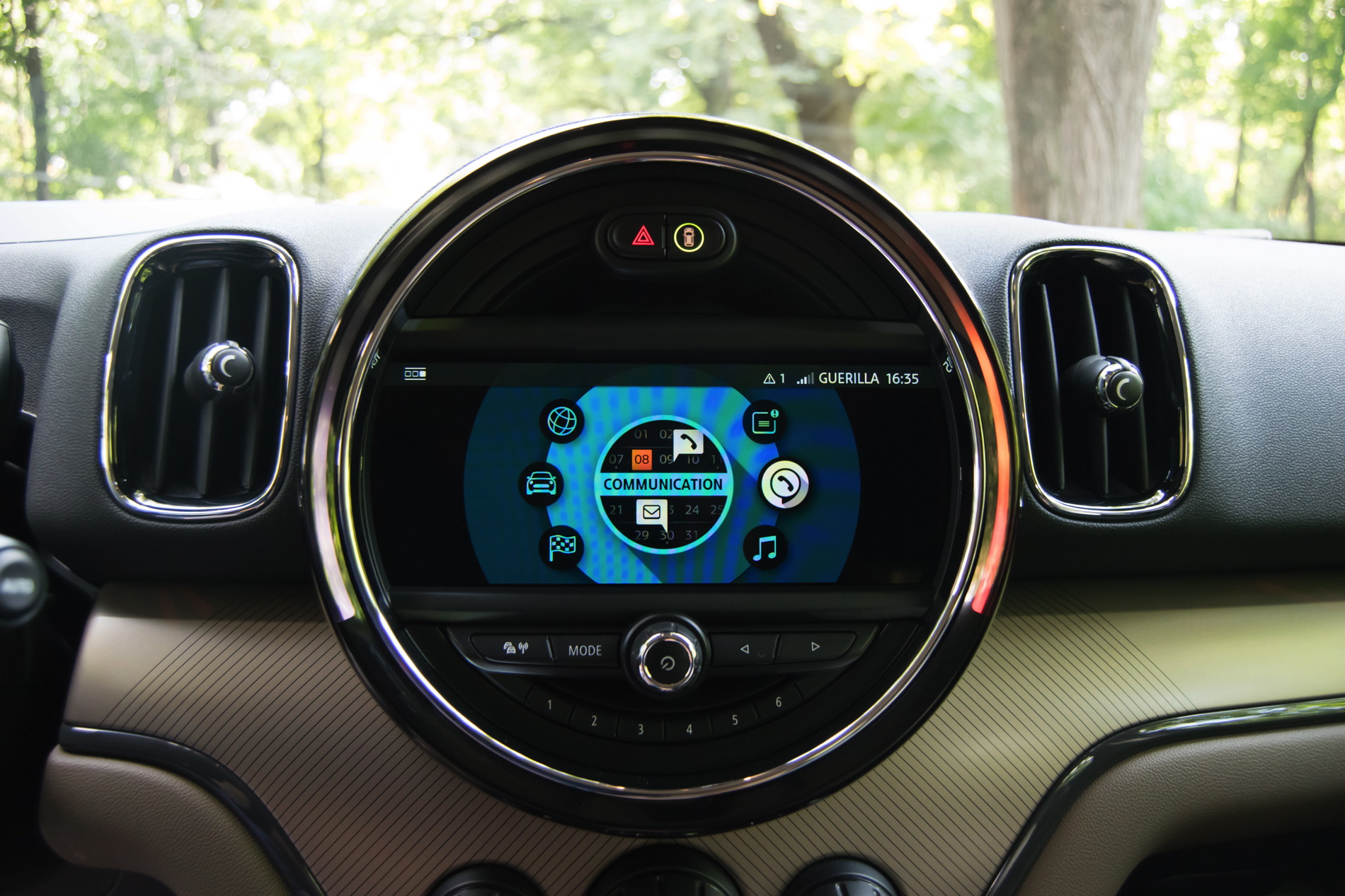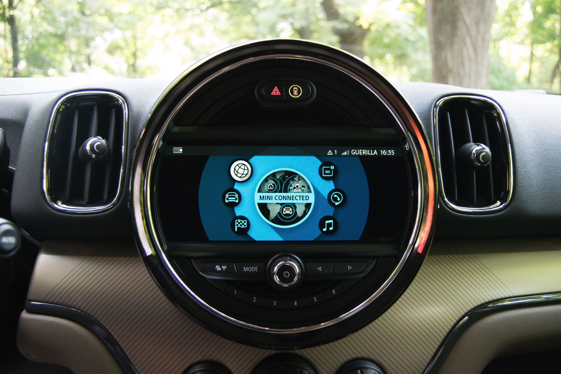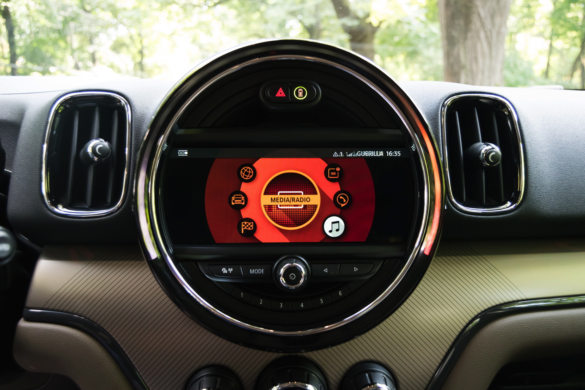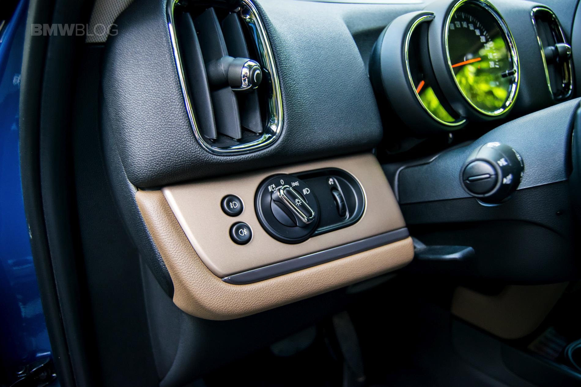 Speaking of buttons, the cabin remains a typical MINI environment, decked with toggle switches everywhere and offering plenty of customizing choices for the customers. The one that you notice immediately is one big piece sitting between the infotainment screen, top part of the dash and the start button. It’s a big trim piece which can be had in a variety of choices. In the case of our tester, it was beige with black stripes and it came alive at night, having blue and red LEDs behind it, giving a rather special feel altogether. Definitely a nice touch by MINI.