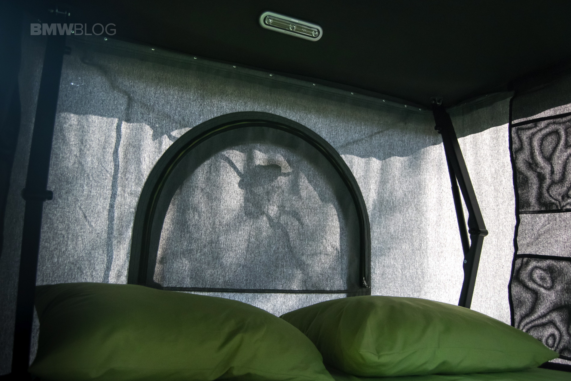 Upon opening it you get two doors with an inner sealing, one on each side and 2 windows, one up front and one in the back. All of them come with mosquito netting. Inside the tent you’ll also find an LED lamp as well as plenty of storage pockets that really come in handy at night. Folding the roof back is just as easy as opening it as all you have to do is pull on it and it will fold right down.