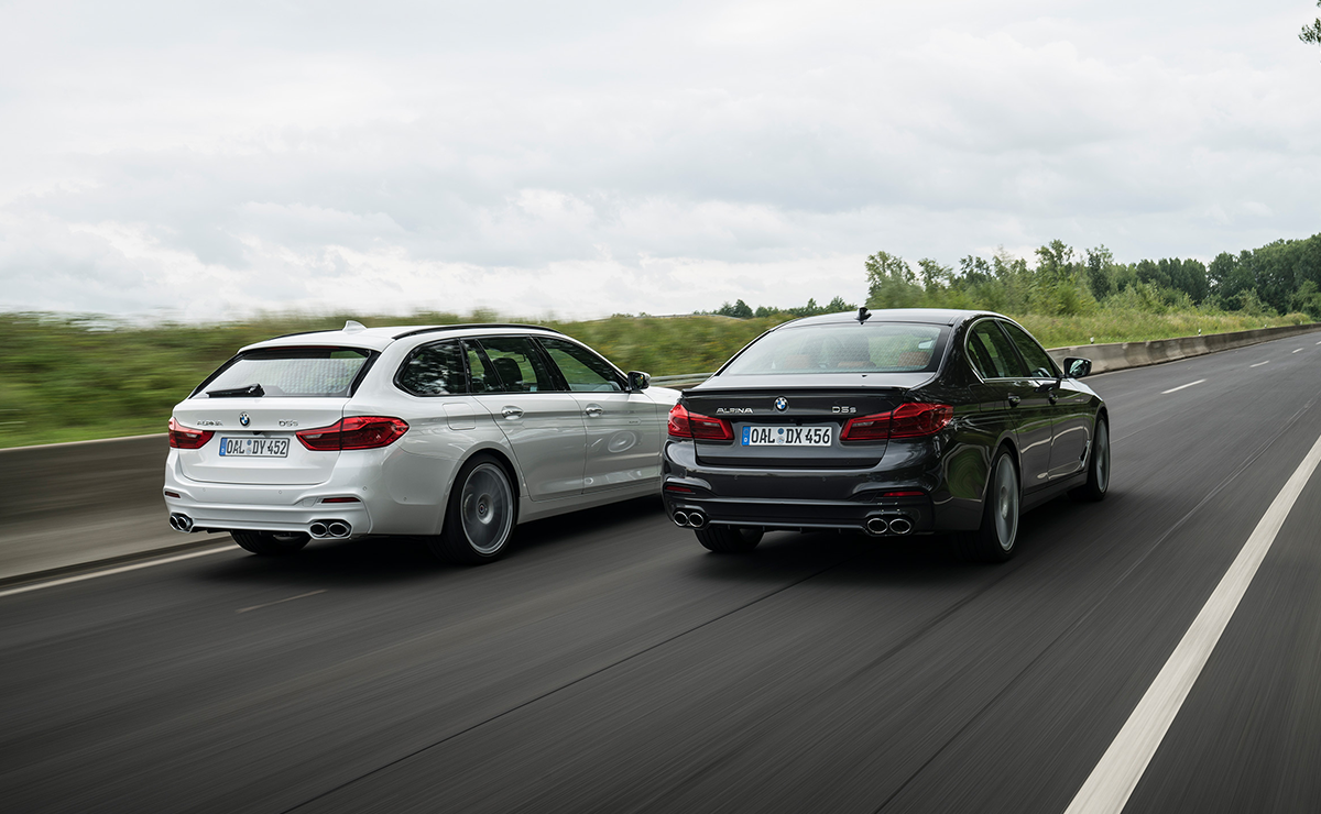 In the sprint from 0 to 100 km/h both variants deliver impressive figures: after 4.4 seconds, the sedan enters the three-digit range, the slightly heavier BMW ALPINA D5 S Touring follows two tenths of a second later. When these values ​​are reached, the D5 S is fitted as standard with all-wheel drive xDrive and therefore traction problems are completely removed. A further contribution is the ALPINA Switch-Tronic based on the ZF 8-Speed automatic.