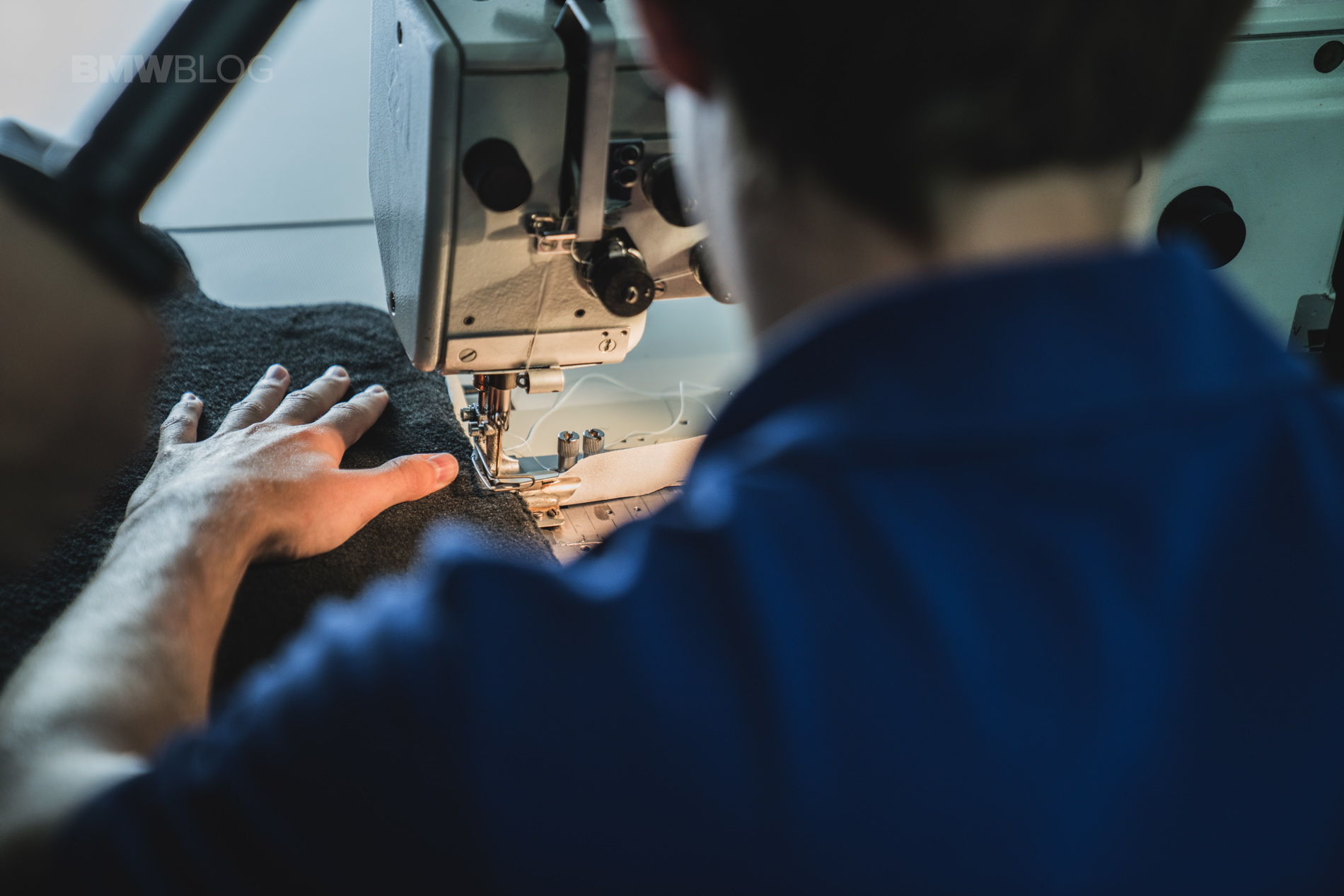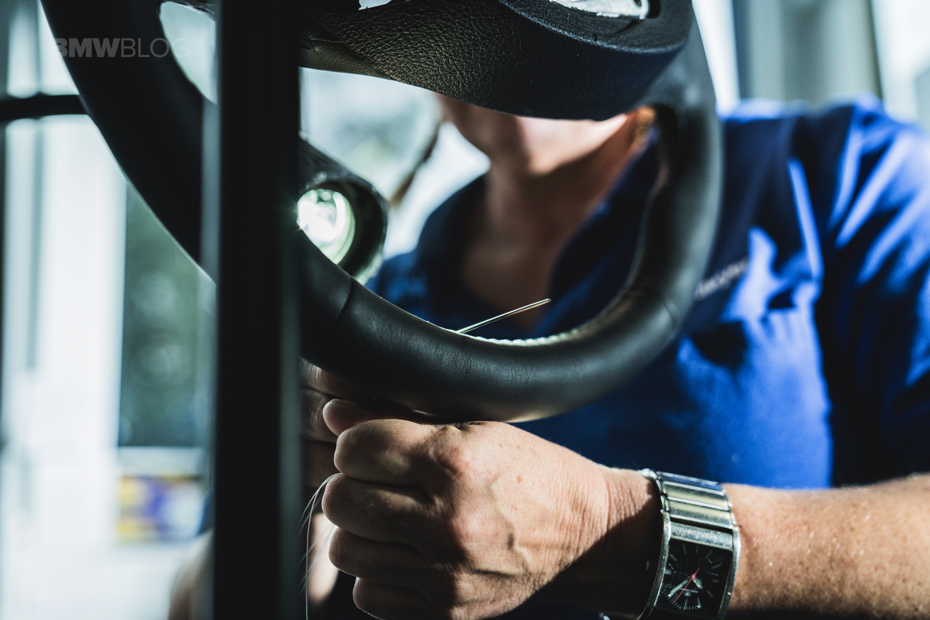 – Hand-finished steering wheel Opal White stitching, bespoke.