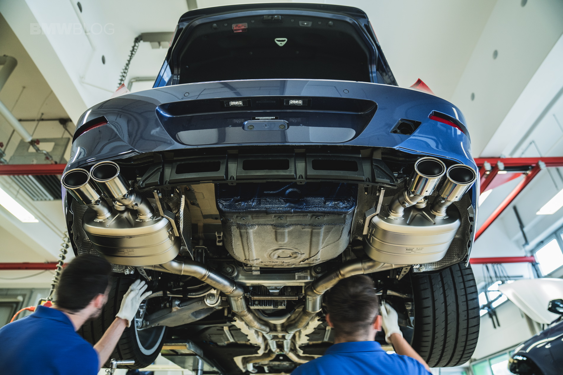 The BMW ALPINA B6 xDrive Gran Coupe BMW CCA Edition’s titanium exhaust system is a technical masterpiece. Engineered as a complete one-piece exhaust system stretching over a length of approximately 12 ft from the downpipes to the rear tailpipes, it is made entirely of titanium and saves over 15 lbs of weight. The two twin tailpipes are finished with a carbon fiber trim.