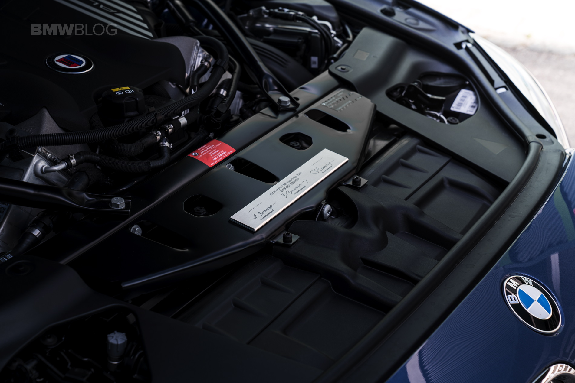 – ALPINA production plaque in engine bay with signatures, bespoke.