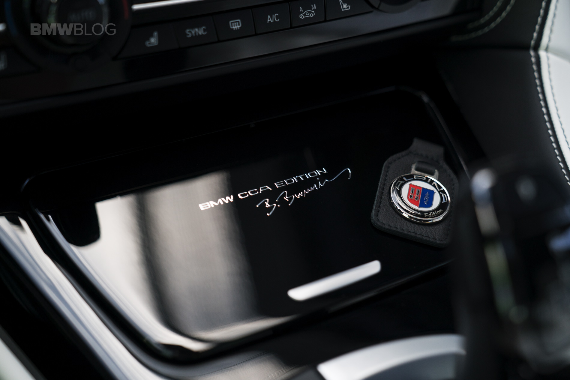 ALPINA Piano Black trim features a special BMW CCA Edition silver inscription on the center console, which has been painstakingly handmade in a one-off production with a high-gloss lacquer finish.