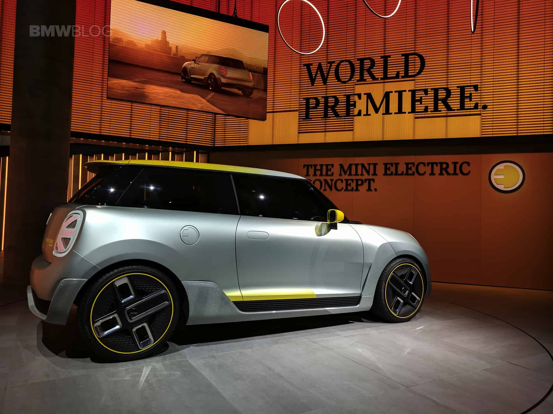 Live from Frankfurt we bring you the firs live photos of the new MINI Electric Concept. The new MINI is based on the standard three-door model in the company’s current range. The design of the MINI Electric Concept stands out with a hexagonal radiator grille and circular headlights. Identifying features include the vividly contrasting silver and yellow colour scheme reminiscent of the earlier MINI E, as well as the distinctive E badge.