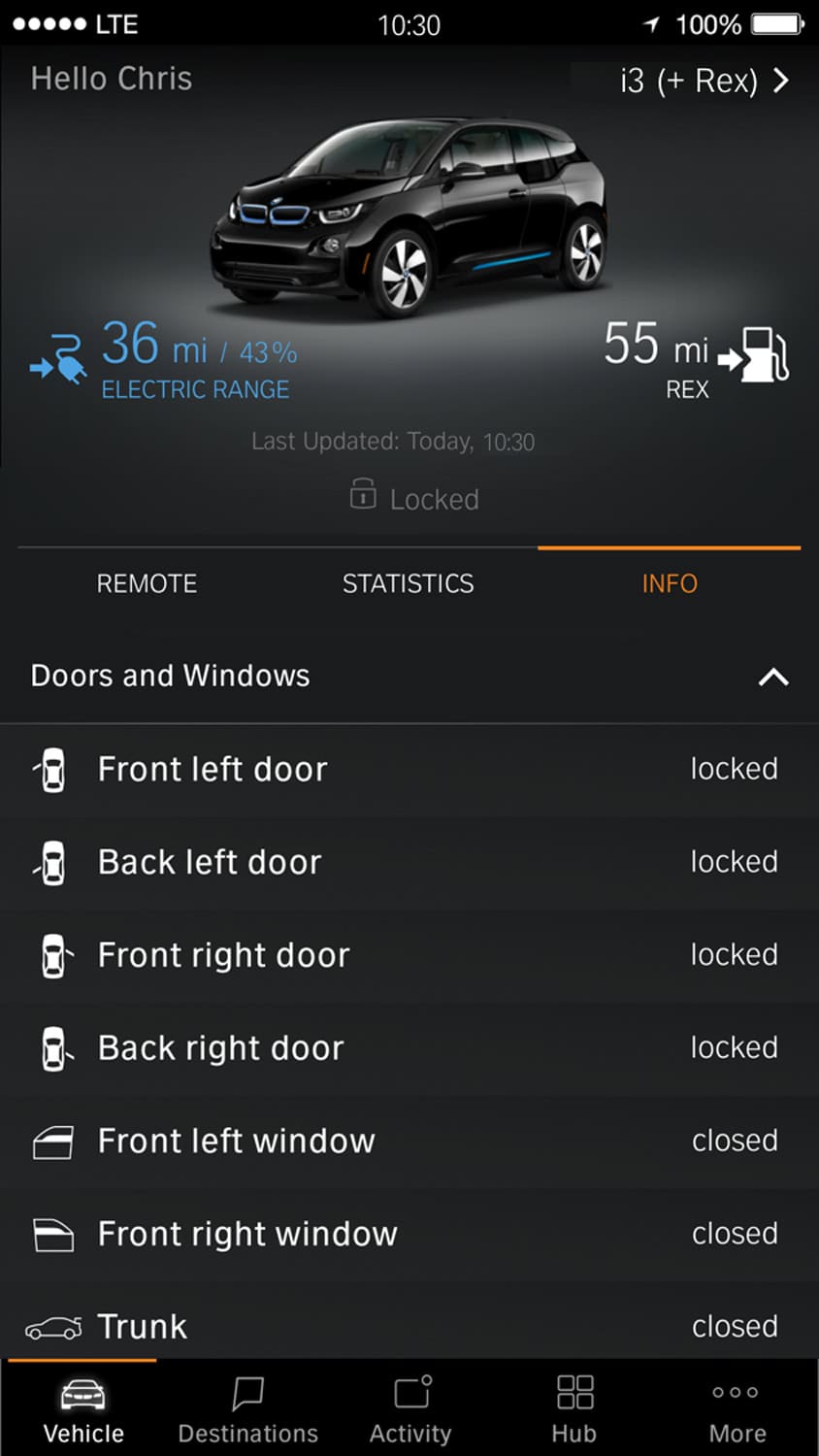 BMWÂ Connected already offers a rapid overview of all relevant vehicle data (including range and available charge), which can be called up using various touch points, such as smartphones and smartwatches. And soon, in addition to the existing capabilities of requesting trip and door status information via Alexa or controlling the vehicle via Remote Services, all vehicle information will also be shown within BMW Connected. With one click the user gets detailed door and window status information. With this feature, users will be able to verify that each door and window is secure or know exactly which needs to be locked or closed.