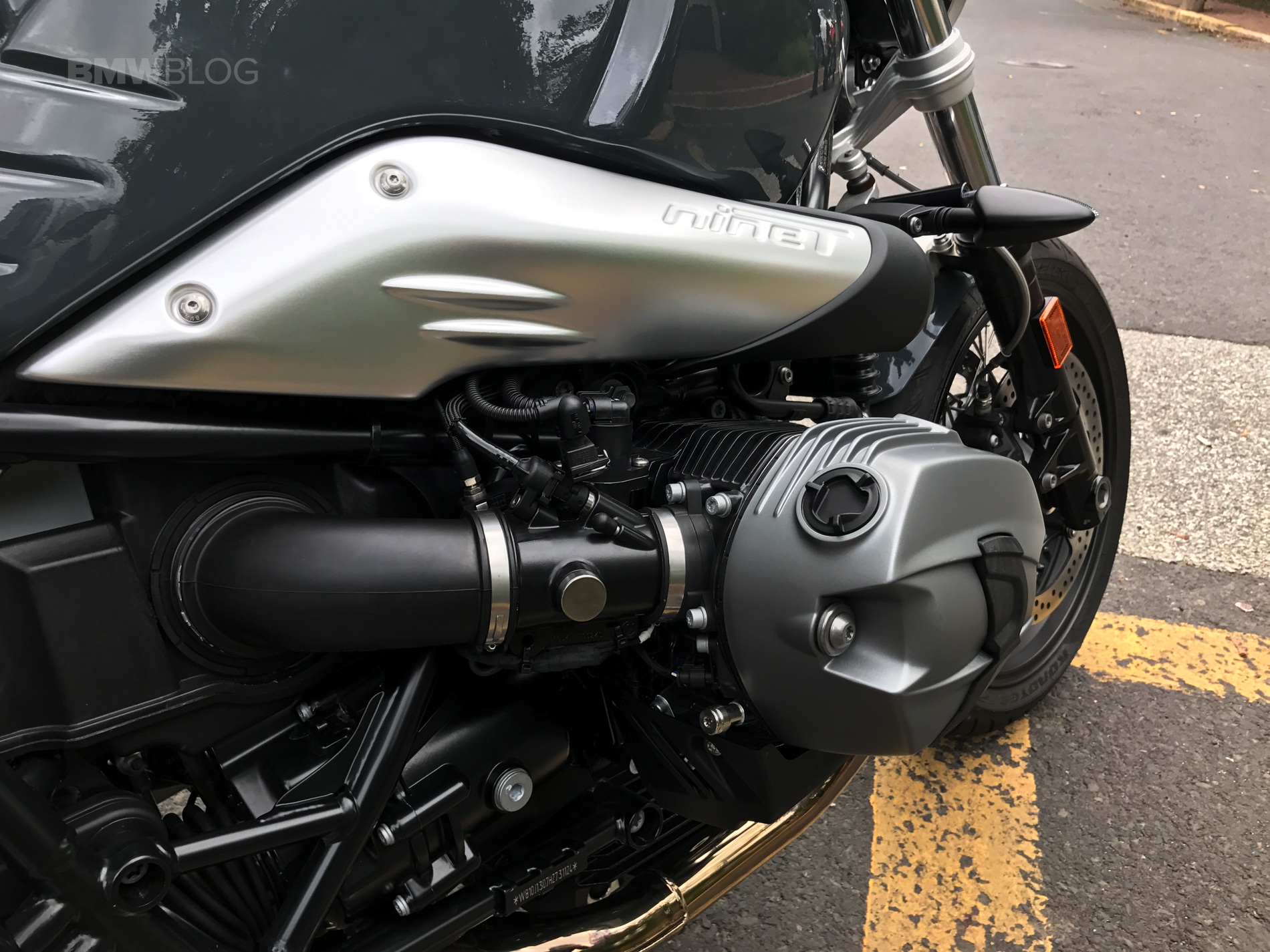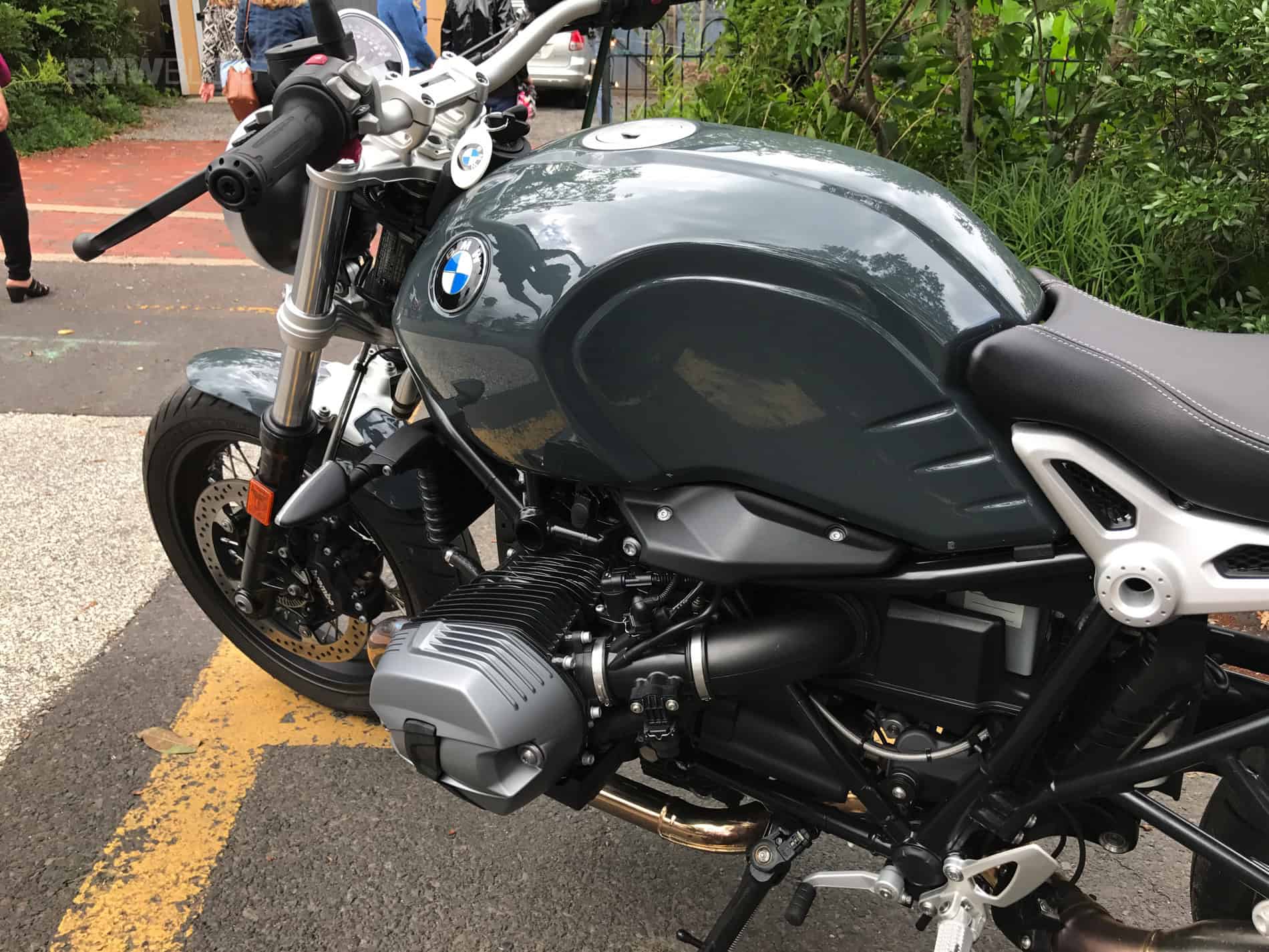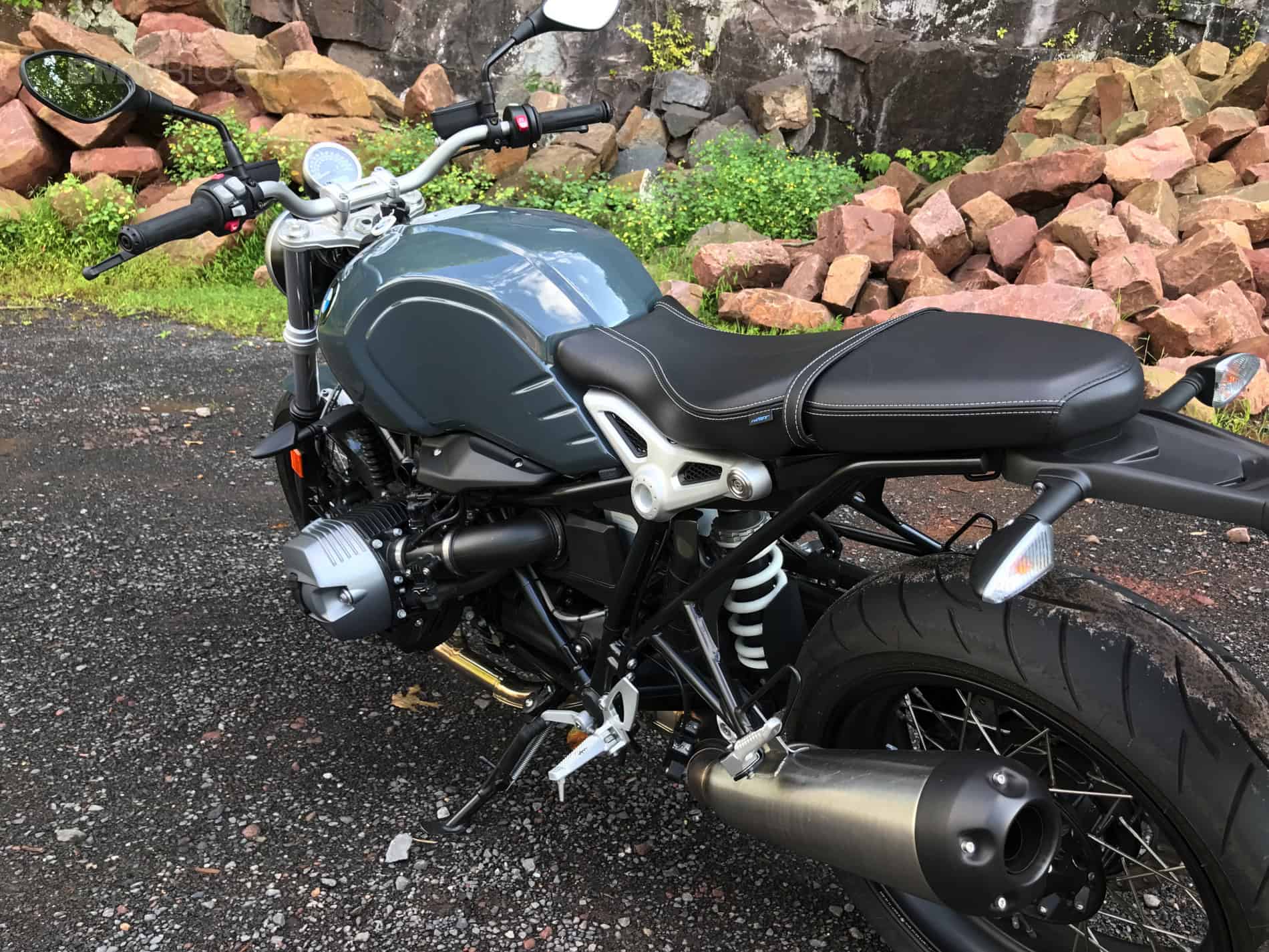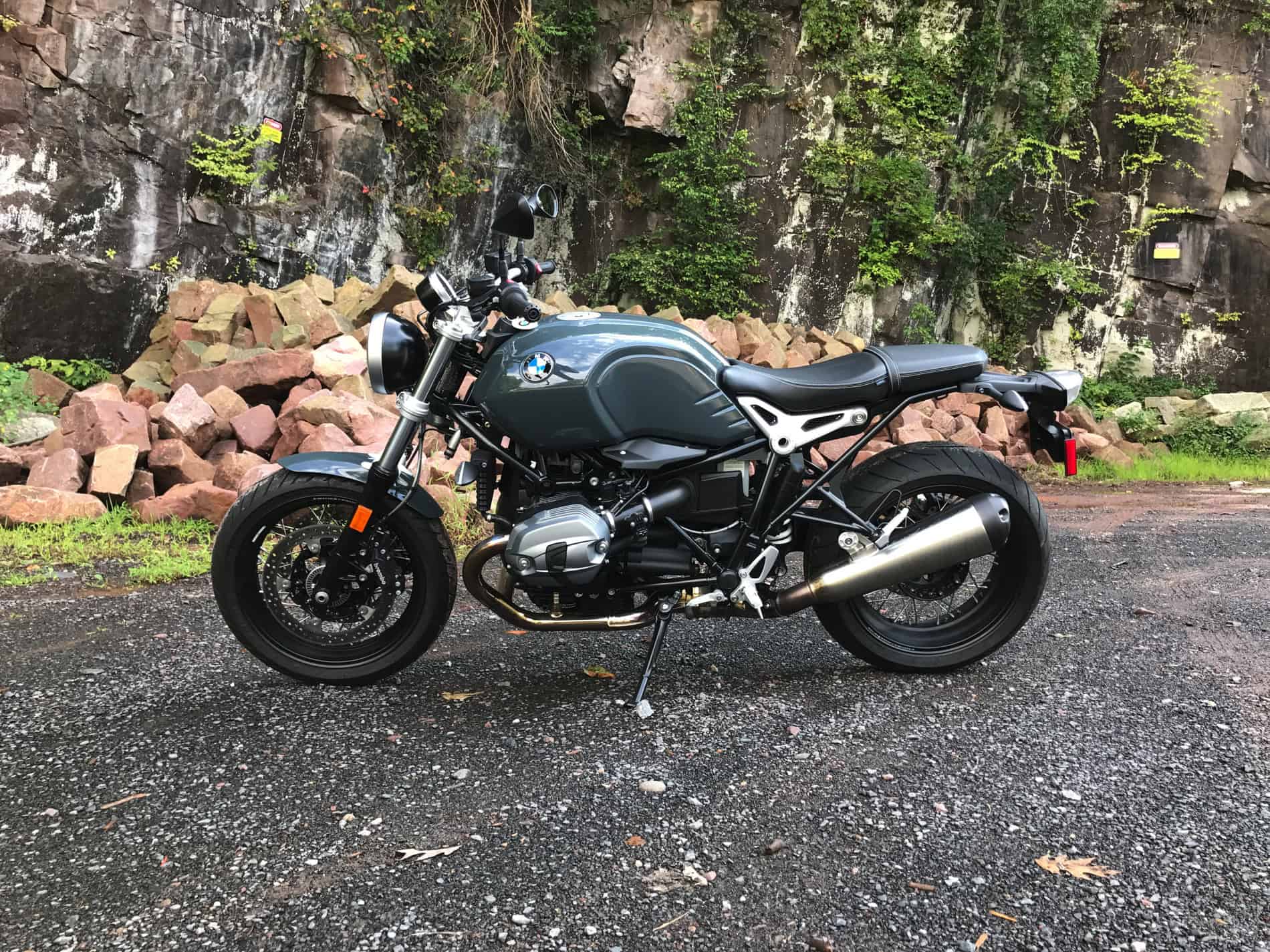 The paint color which embellishes the steel tank, dubbed Catalano Grey, is non-metallic and has a glossy finish. It pairs wonderfully with the black and metal components on the bike, and serves to give the bike a bit of a gritty persona, as opposed to the original R nine T.