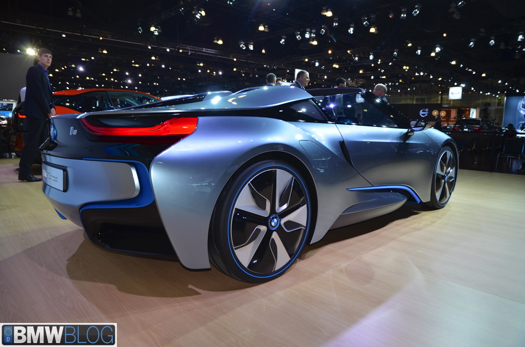 - And the point final: The i8 Roadster! OMG, that’s a nice looking ride. Of course no back seats, but they filled that with the retracting top which folds (it’s cloth) and disappears in 14 seconds up to 60 km/h. It had the color Electric Copper. It holds double the batteries as the i8 and range has been even more extended. No more details.