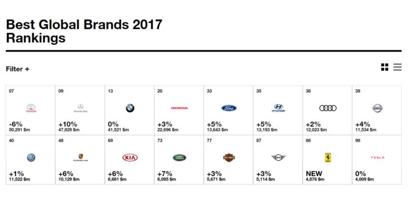 The 2017 Interbrand Best Global Brands report was published this week and there were a couple of surprises thrown in the mix. Of course, the top of the pile was once again dominated by Apple, Google and Microsoft but the remaining 97 top brands in the world duked it out nonetheless. In the automotive field, BMW was placed among the top three best brands in the world, right under Mercedes-Benz and top-dog Toyota.