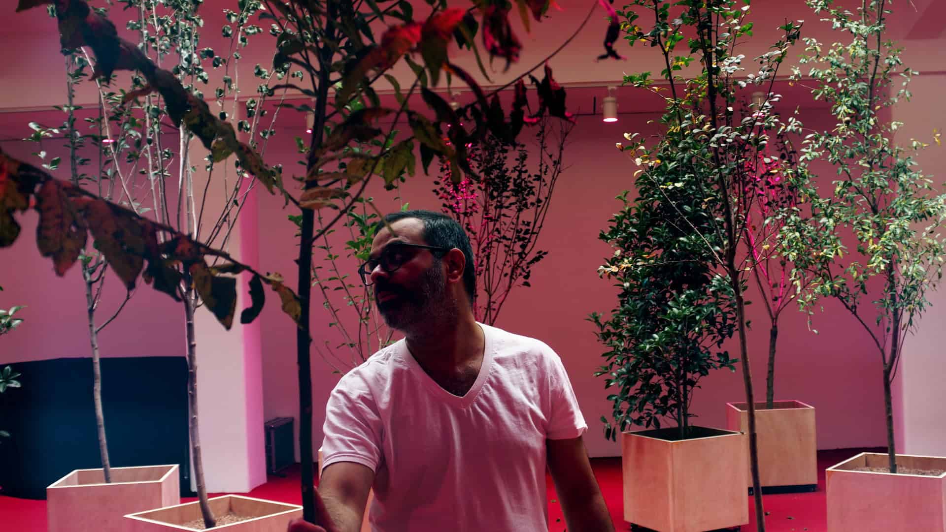 UV lights are strategically placed to encourage the trees’ photosynthesis throughout the installation, whilst casting a pink hue over the proceedings. Objects belonging to the caretakers and relating to their personal histories are also incorporated into the installation, creating an intriguing and unexpected immersive experience. Raza intends to create an environment that provides visitors a park-like respite from the traditional museum viewing experience, shunning silence and sedentary observation in preference of interaction and stimulation. Adding a further complexity to the work, the space can be adapted for other artists or performers to interact with the environment, acting as guest contributors to the piece.