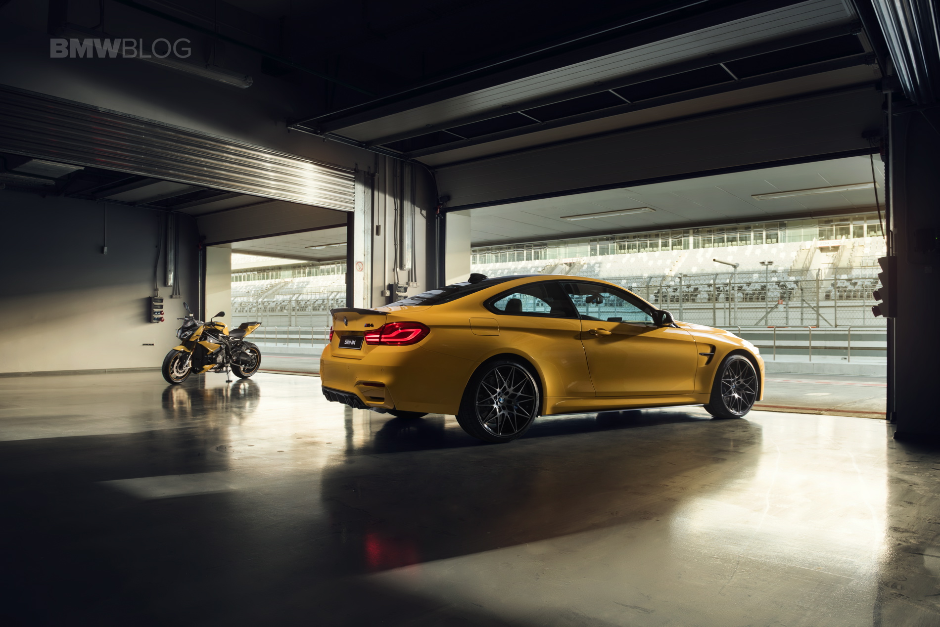 In May 2017, the official BMW Group Russia dealers began accepting orders for the BMW M4 Coupe and BMW S 1000 R bikes, all configured with special paint jobs and the Competition Package. A total of 23 BMW M4 and 7 BMW S 1000 R have been painted in the individual finishes Speed ​​Yellow and Laguna Seca Blue in order to be even more eye-catching. All 23 BMW M4s carry the Competition Package including characteristic light-alloy wheels in the design star spoke 666, plus some carbon attachments from BMW M Performance. 15 vehicles were painted in the Laguna Seca Blue color, the remaining 8 wear Speed Yellow.