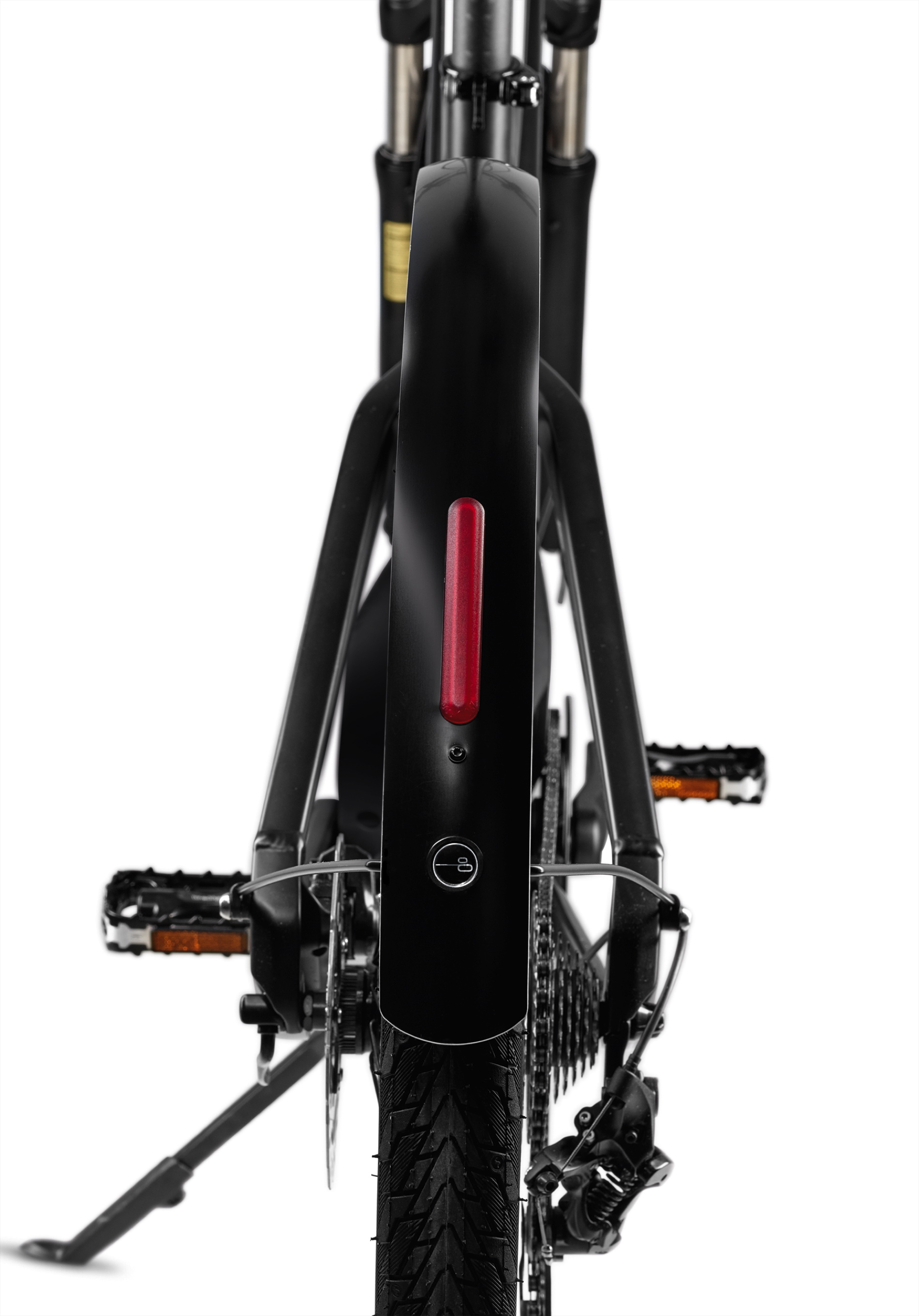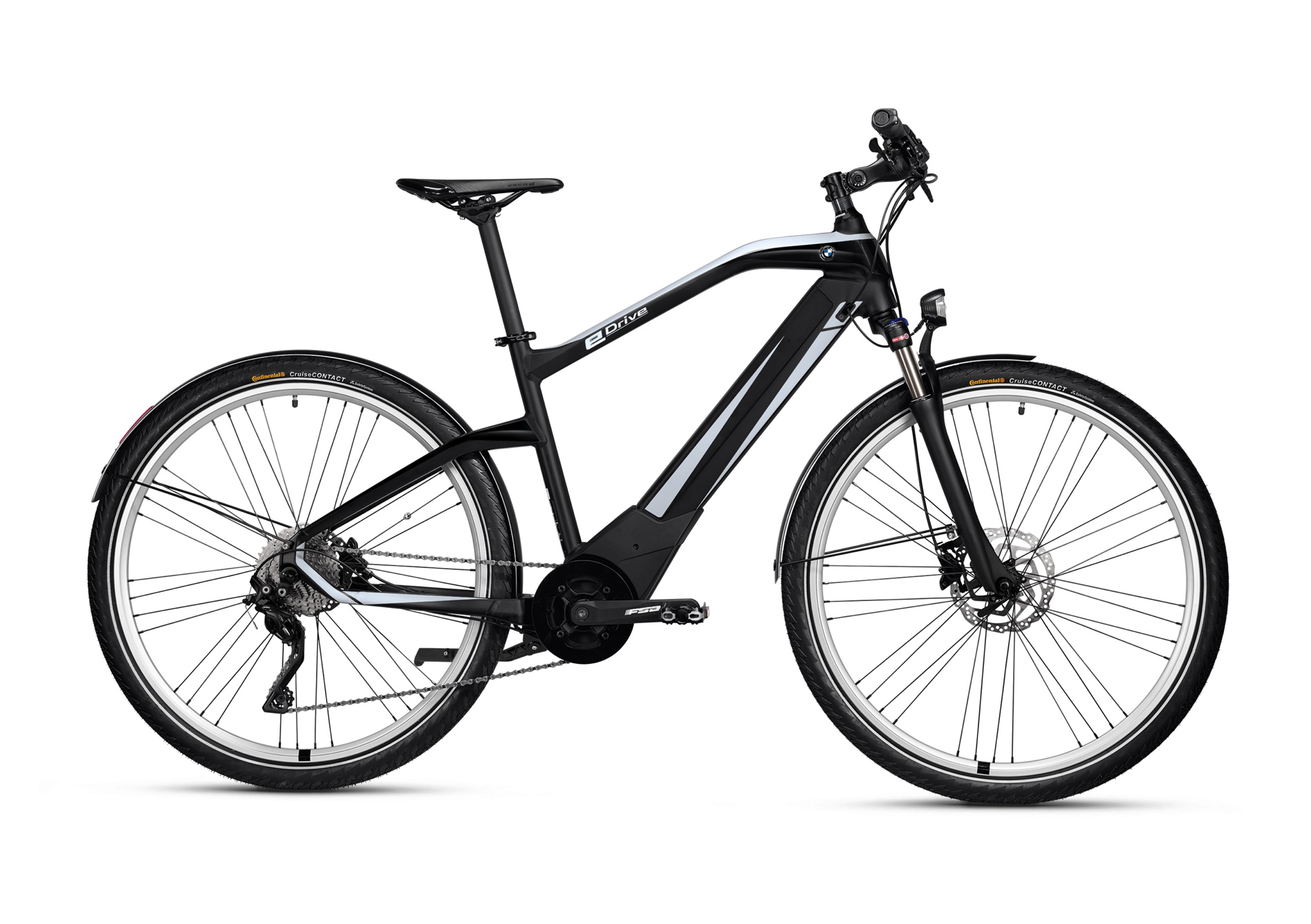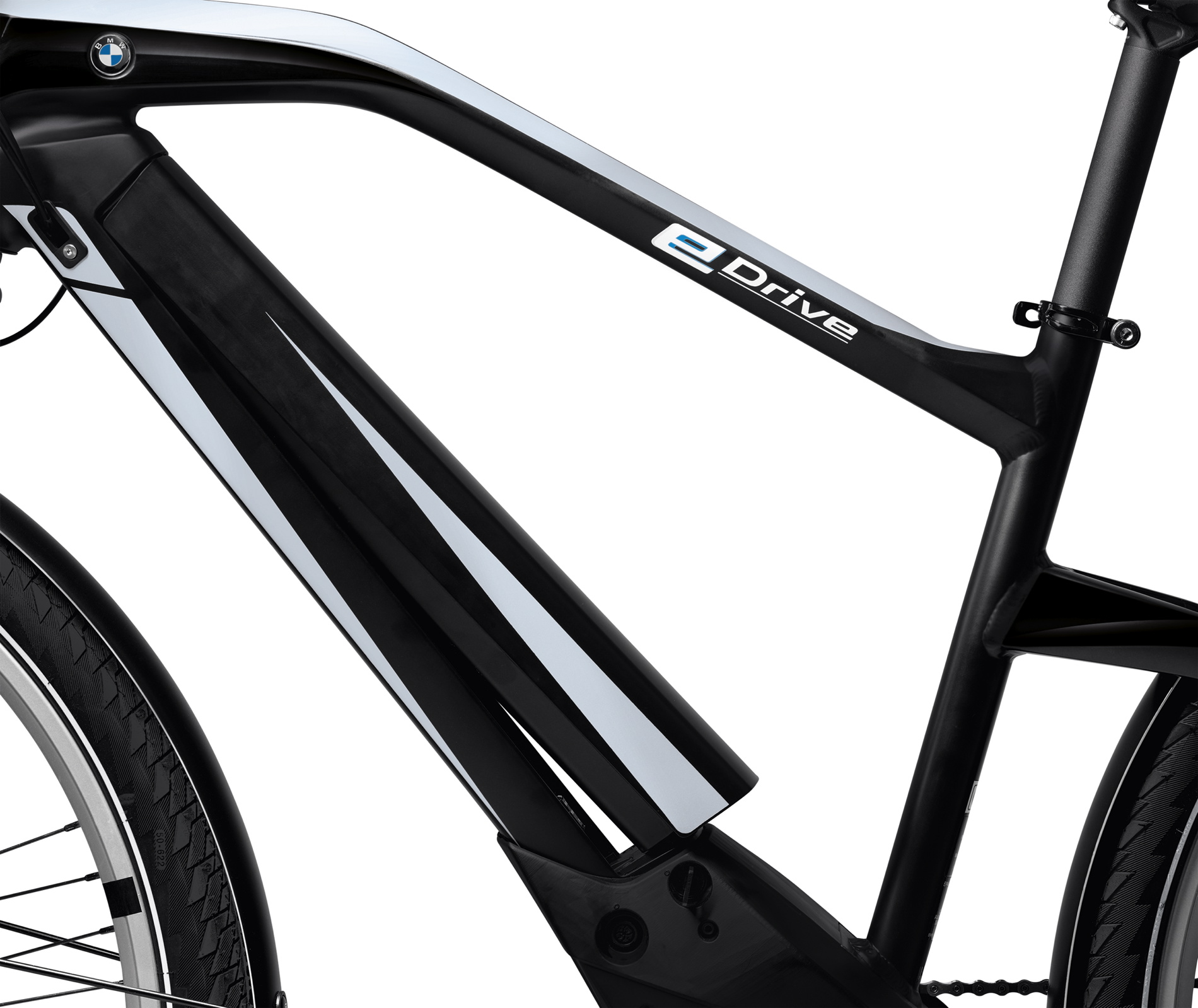 The motor and battery are fully integrated into the hydroformed aluminum frame, highlighting the bike’s elegantly sporty silhouette. The frame’s profile is accentuated by the familiar BMW “bullneck”, which exudes energy and forward-surging presence, and the exclusive Frozen Black and Arctic Silver paintwork. The LED light integrated into the aluminum mudguard over the rear wheel maximizes safety and adds a further design flourish.