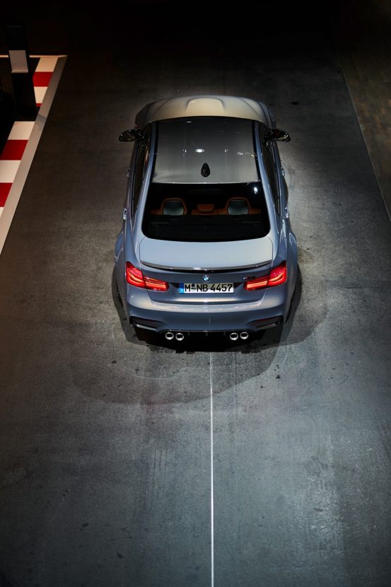 The BMW M3 sedan is currently available with 431 and 450 bhp, the more powerful version of the engine is coupled with the Competition Package. The Farfus M3 has the black M3 lettering at the rear, while the shadowline with extended circumferences and the seatbelts with M-colors are nevertheless clear indications for the Competition Package plus performance increase to 450 PS.