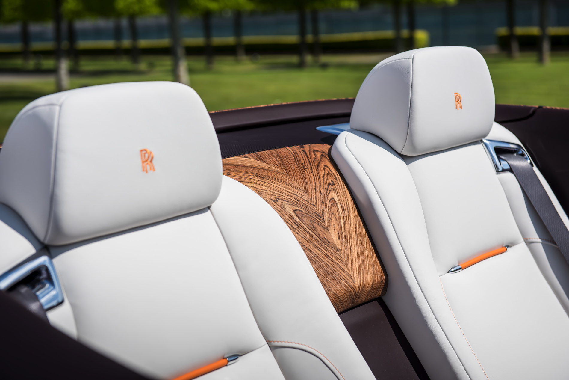 The ‘Lago di Como Dawn’ features a crisp Selby Grey and Black interior of hand-sewn leather, complemented by a brushed aluminum fascia. The ‘Saint-Tropez Dawn’ has an equally sumptuous interior of Seashell leather, accented with bright orange Mandarin and sumptuous chocolatey Dark Spice, with a fascia and doors paneled in rich Canadel open-pore wood.