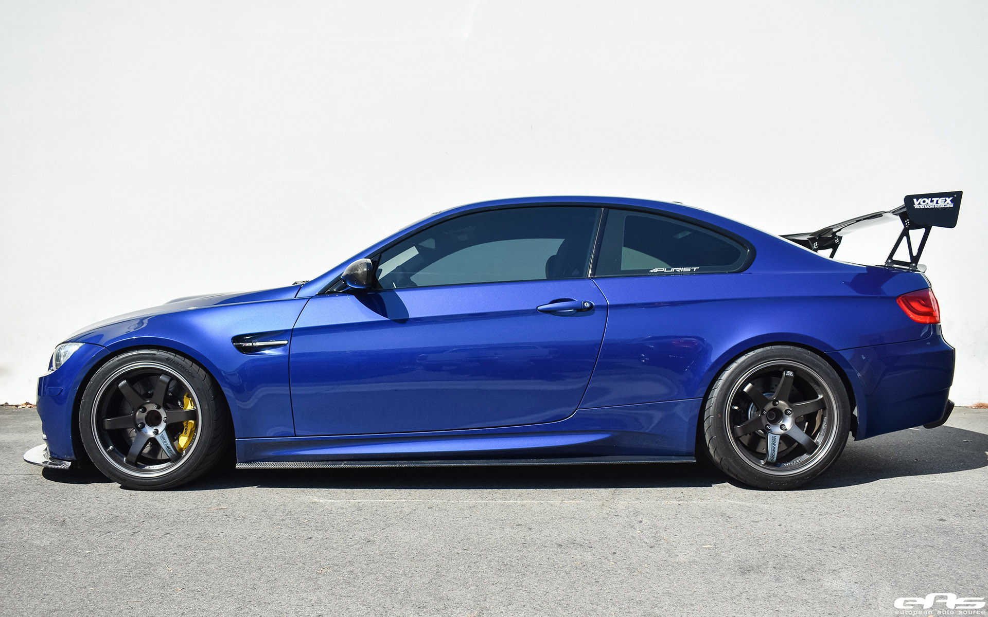 The E92 M3 was then optioned with a big Voltex Racing carbon fiber wing, mounted on the decklid. In turn, this gives the BMW M3 that JDM, time attack/drift look. Further additions come in form of the Autoteknick gloss black kidney grilles and a Mode Carbon Motorsport GT4 carbon fiber front splitter.