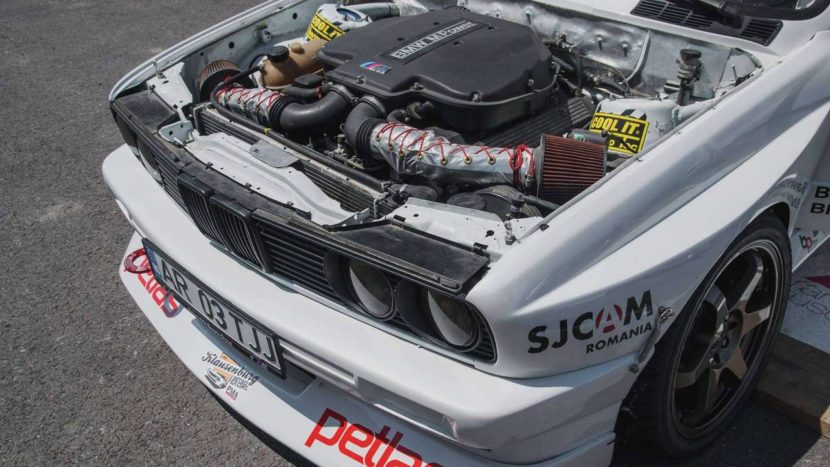 Two years into competing, she realized she’ll soon want more from the car, so the 4.4-liter V8 was replaced with a bigger one: the 5.0-liter S62 unit coming from a BMW E39 M5. In order to adapt the bigger lump to the new life, it had its ECU remapped, which added some more 25-hp over the 394-horsepower stock figure.