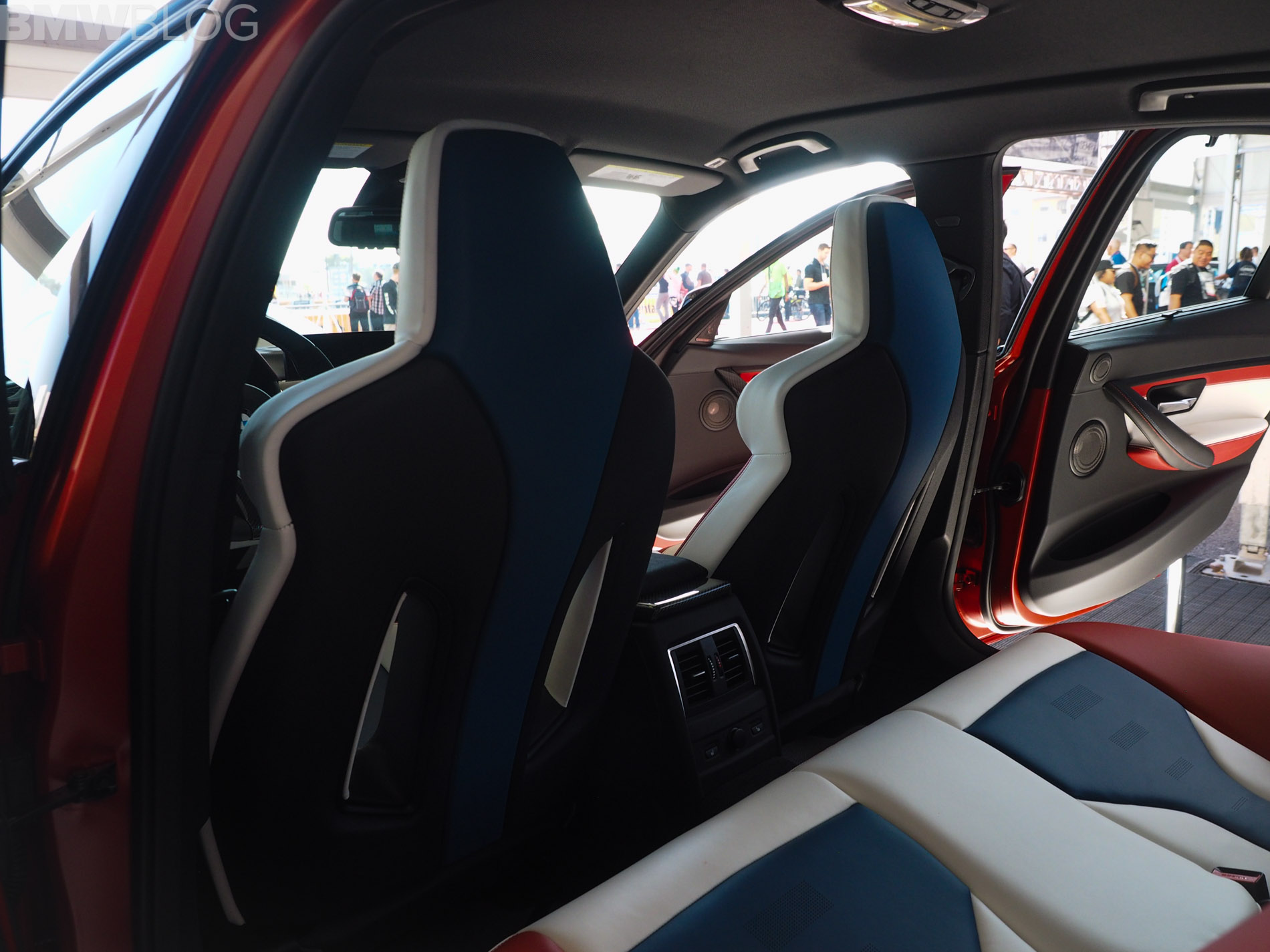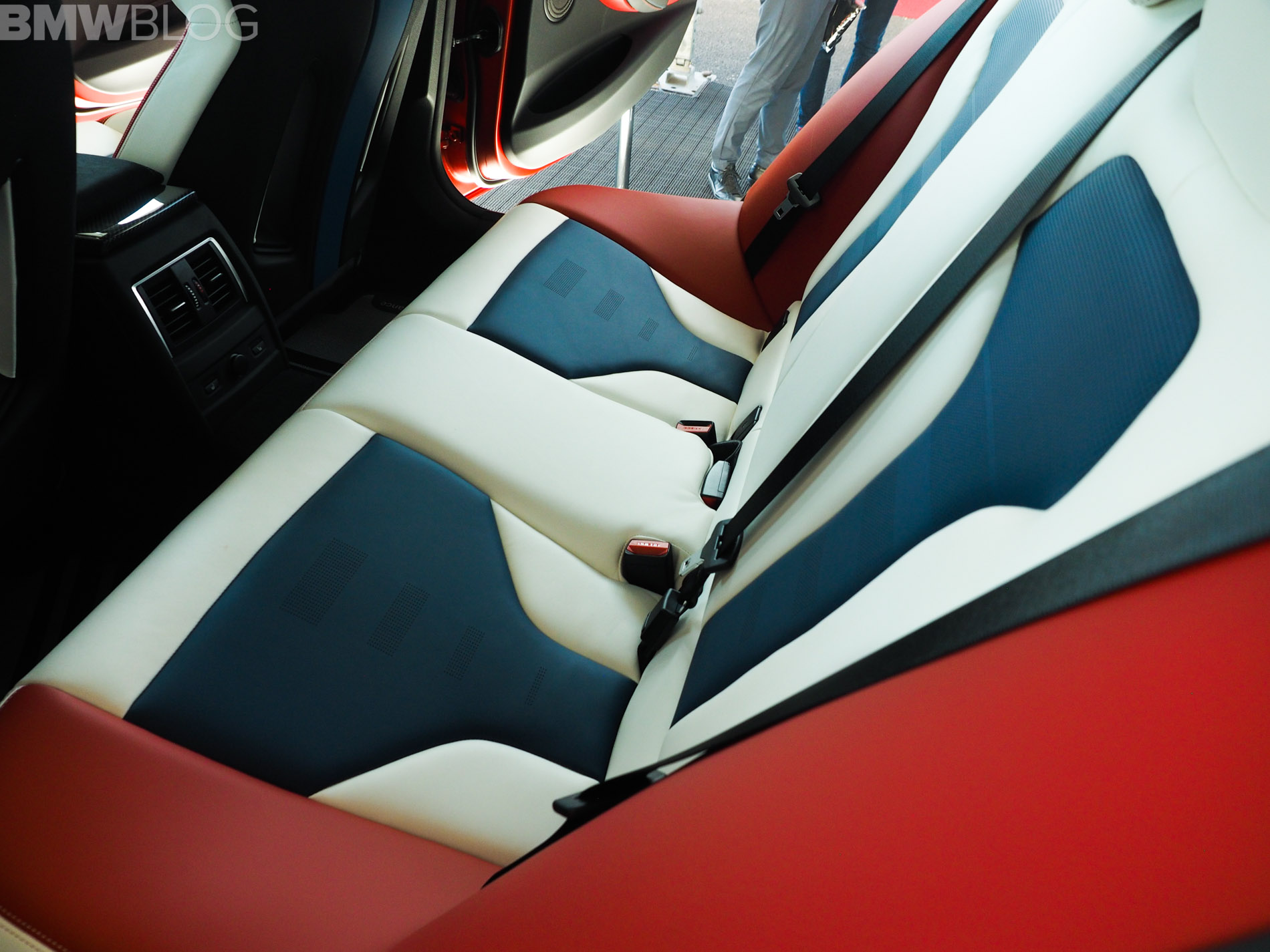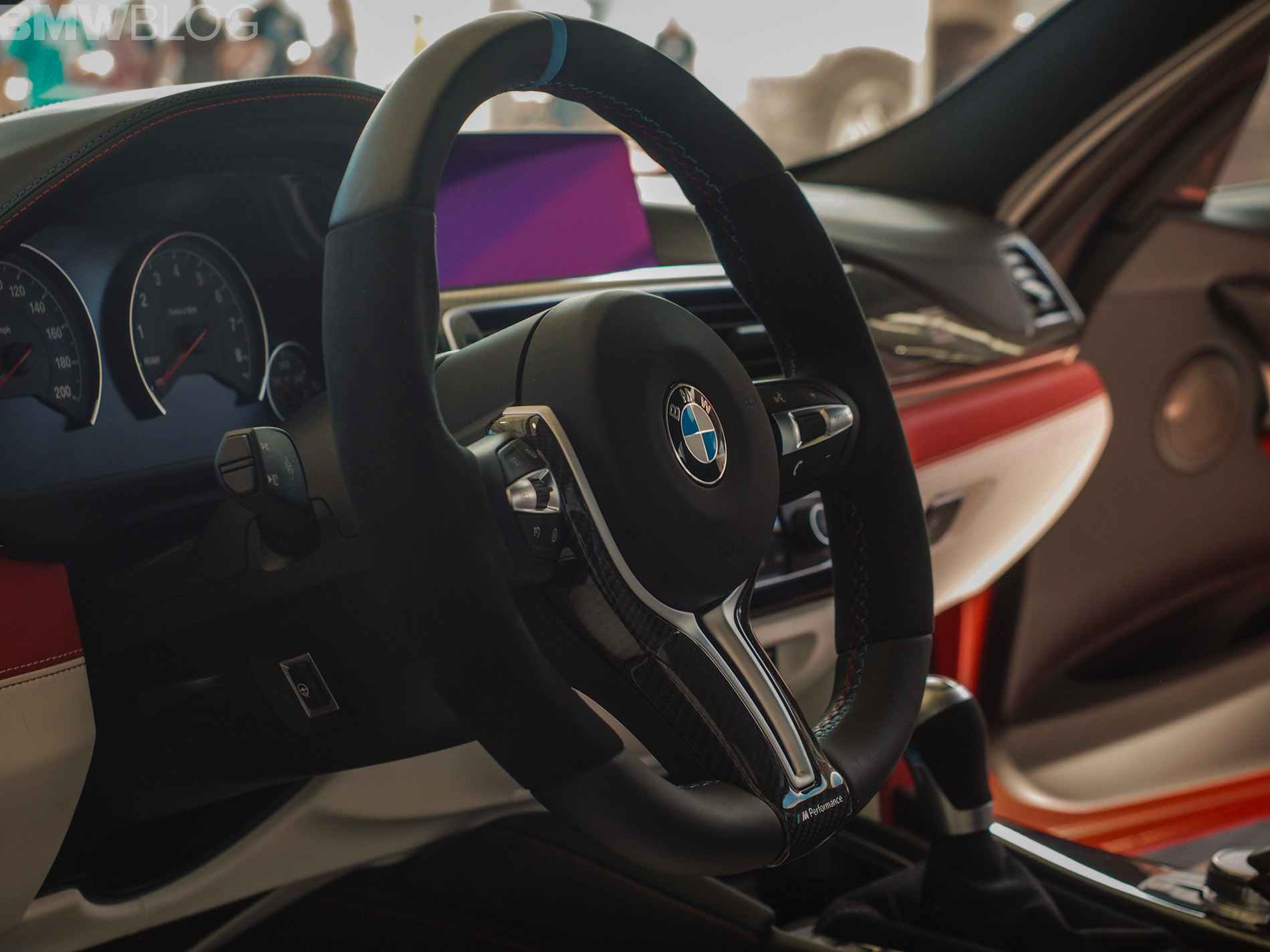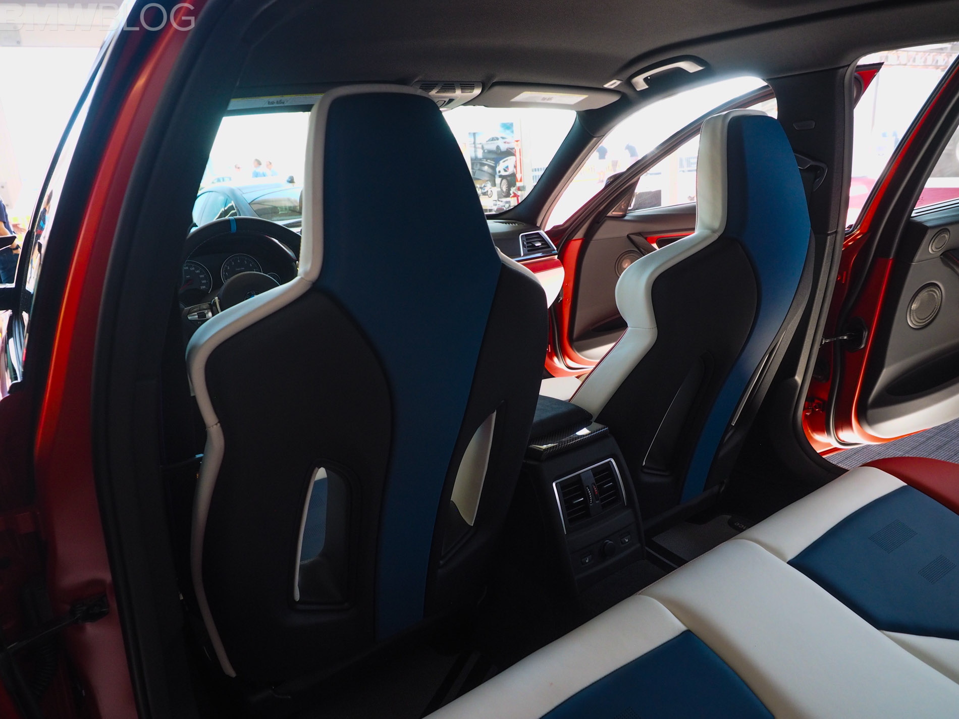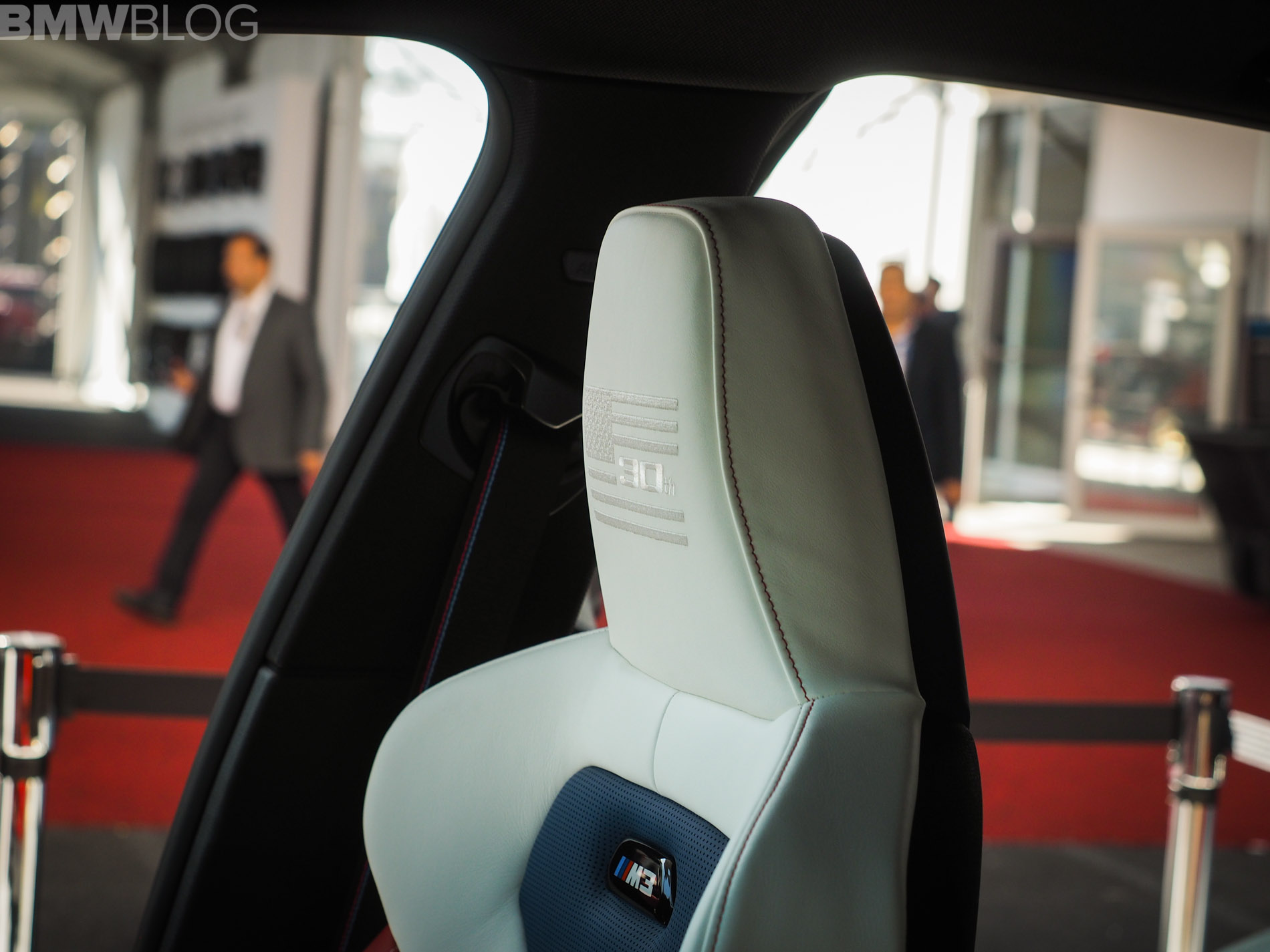 When it comes to the interior design and choices, the BMW M3 American Edition is by far the most interesting production BMW M interiors we’ve ever seen. It’s been given a tri-tone interior, done by DesignWorks, in red, white and blue, as in the American flag. There are also some logos on the trim, which depict an American flag with the number “30” in it. The M logo and colors are also well represented within the cabin.