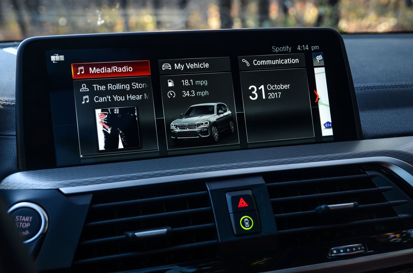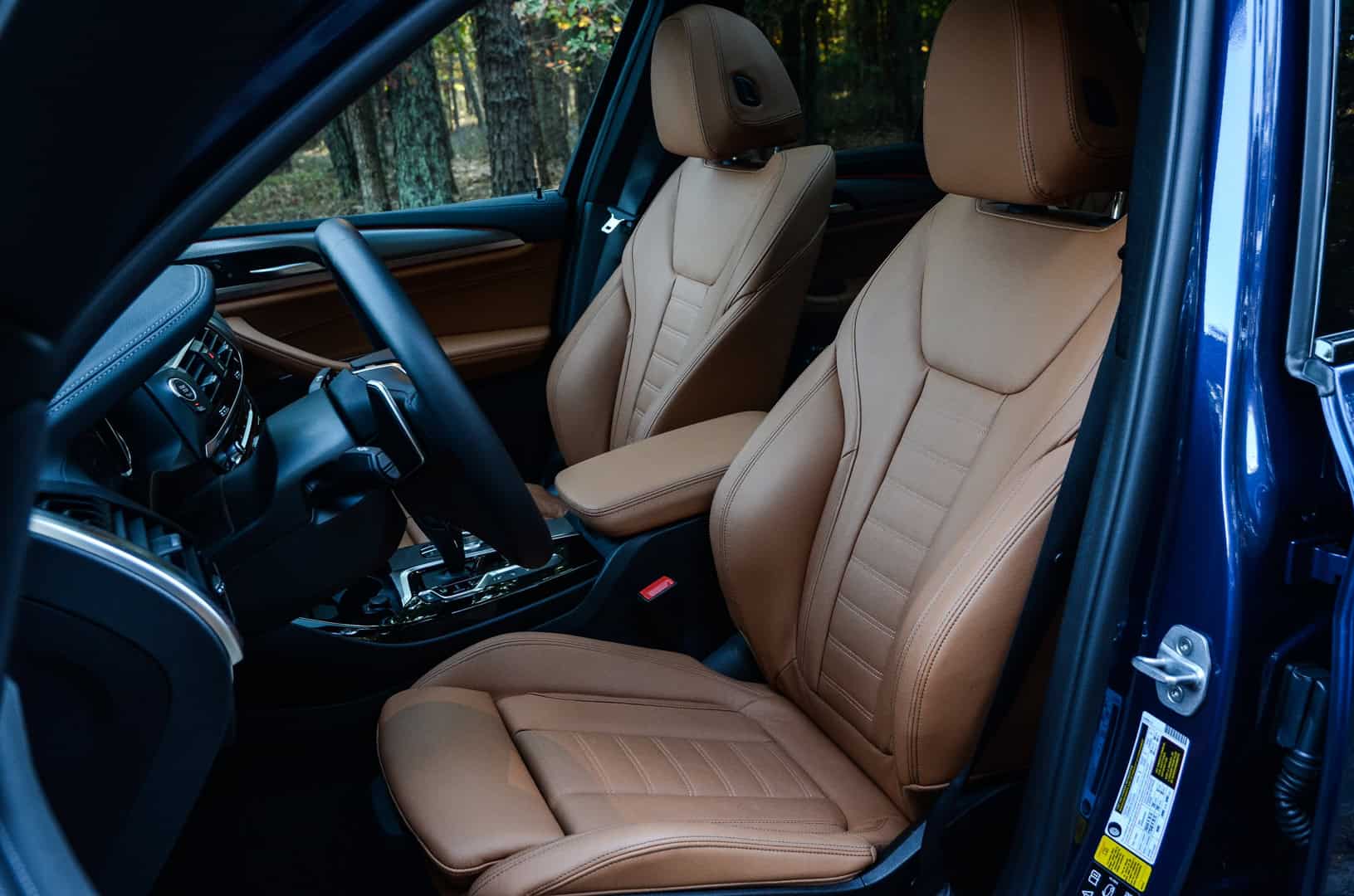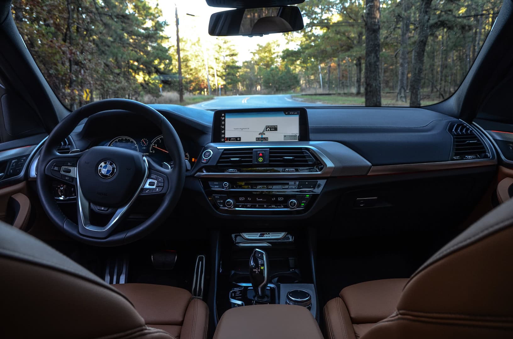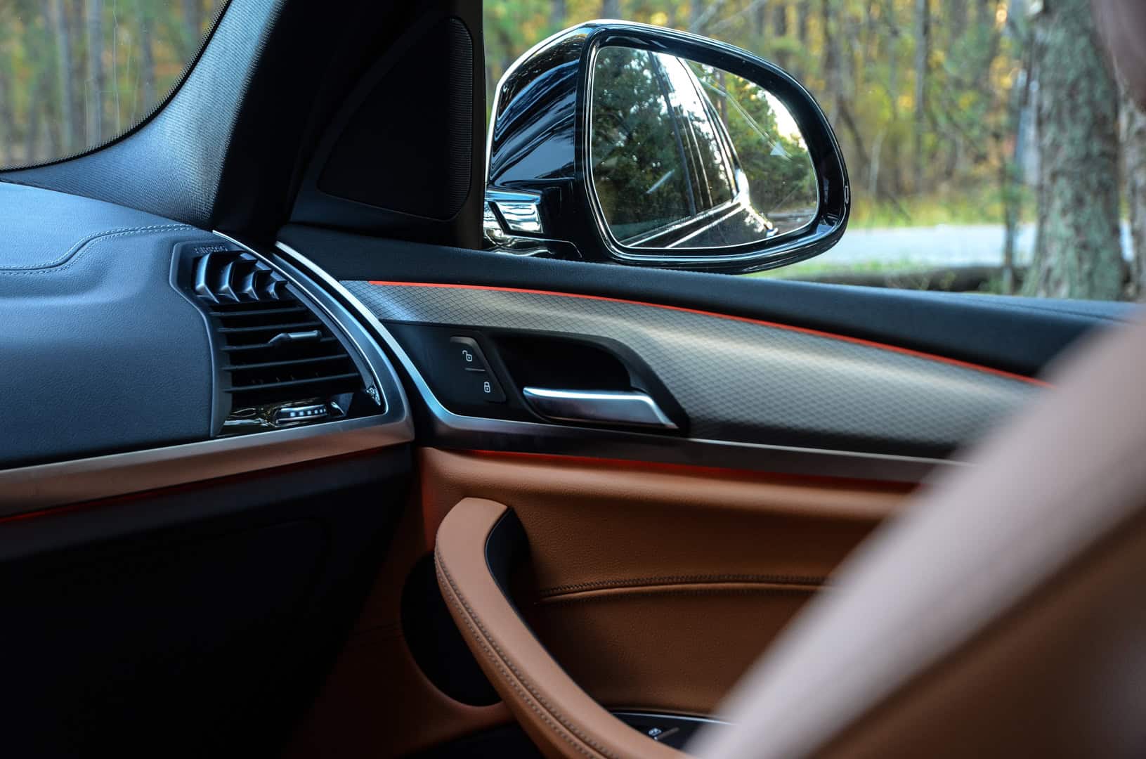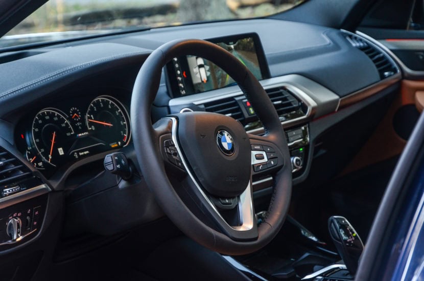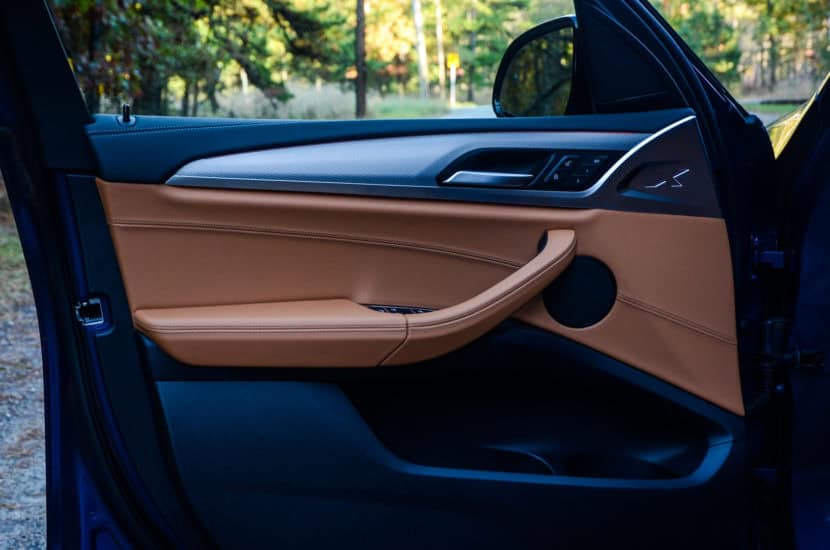Some small musings about the cabin, include some fun bits as well as little ergonomic details. For instance, there are large “X” badges throughout the interior of the X3, but not in places that you’d normally look. Sort of like BMW Easter Eggs. Open the door and just ahead of the lock and memory seat switches is an “X” stamped into the aluminum trim, though you can’t see it with the door closed (on the rear doors you can). Same goes for the B-pillar, where at the very top of it lies another stamped “X” which can only be seen with the door open. The X3 also features the best cupholders of any BMW I’ve ever driven, with big chunky ones ahead of the shift lever, with an inductive charging mat for capable mobile phones ahead of them. Also, the ability to cycle through music, such as Spotify, on the Head-Up Display is really helpful and cool to use.