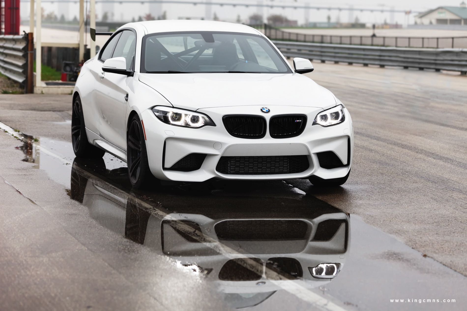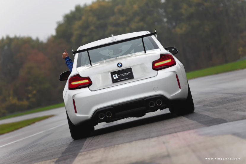 These photos represent some of the M2 parts installation process. The dealership documented the changes and upgrades during the vehicle’s transformation. Once the racecar was completed, it was off to the track at Autobahn Country Club in Joliet, IL, despite the fog and rain.