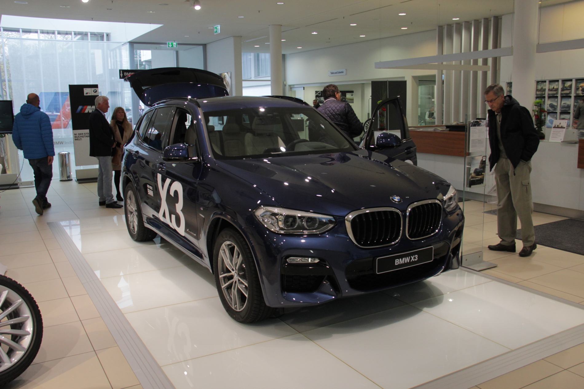 In order to achieve this goal, the BMW flagship dealership in Munich showcased a total of three different BMW X3 models. The performance-oriented BMW X3 M40i was joined by two diesel-powered X3 xDrive20d models. Customers were eager to have a look at the new model and, typical for German GrĂĽndlichkeit (thoroughness), some of them were armed with a folding ruler.