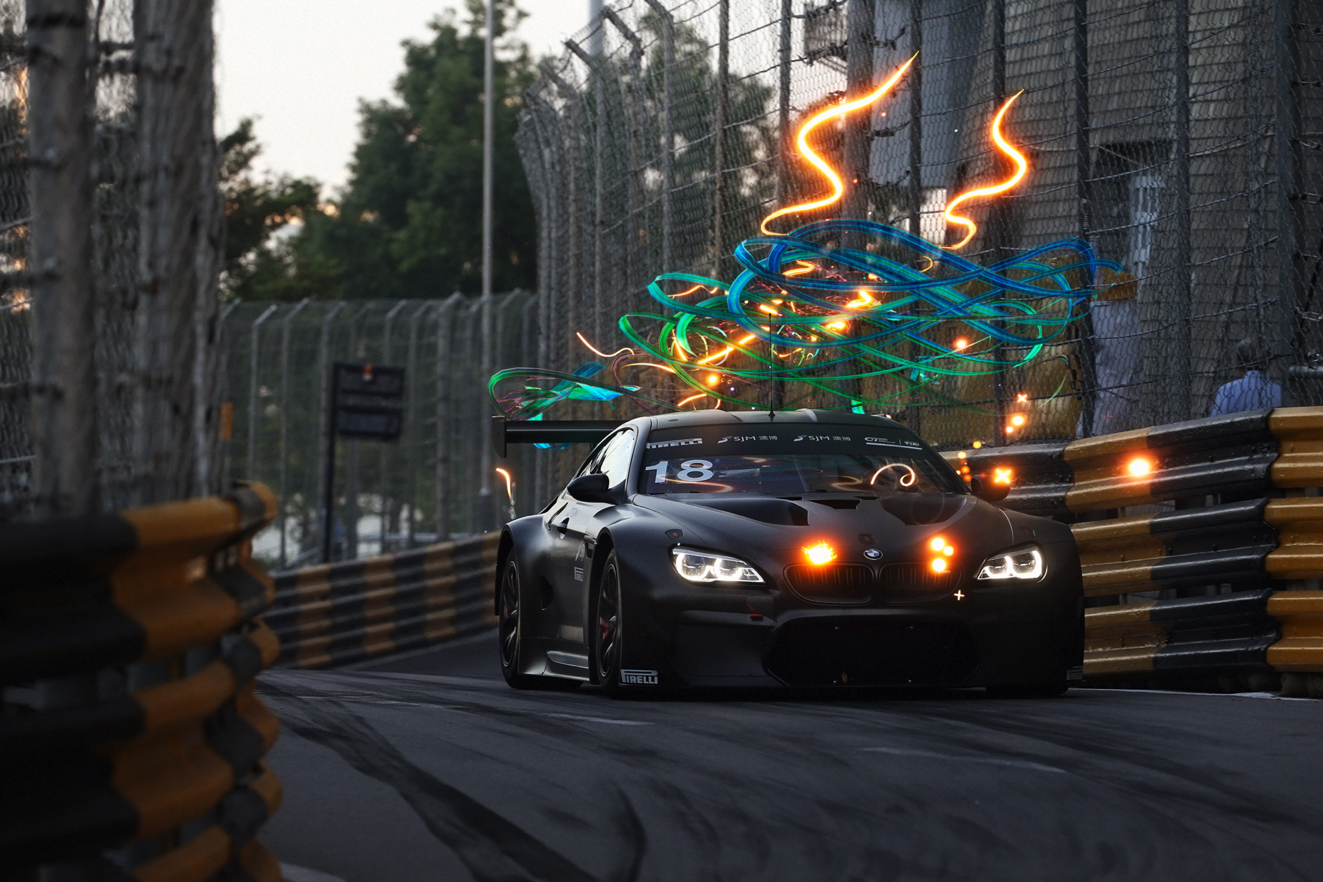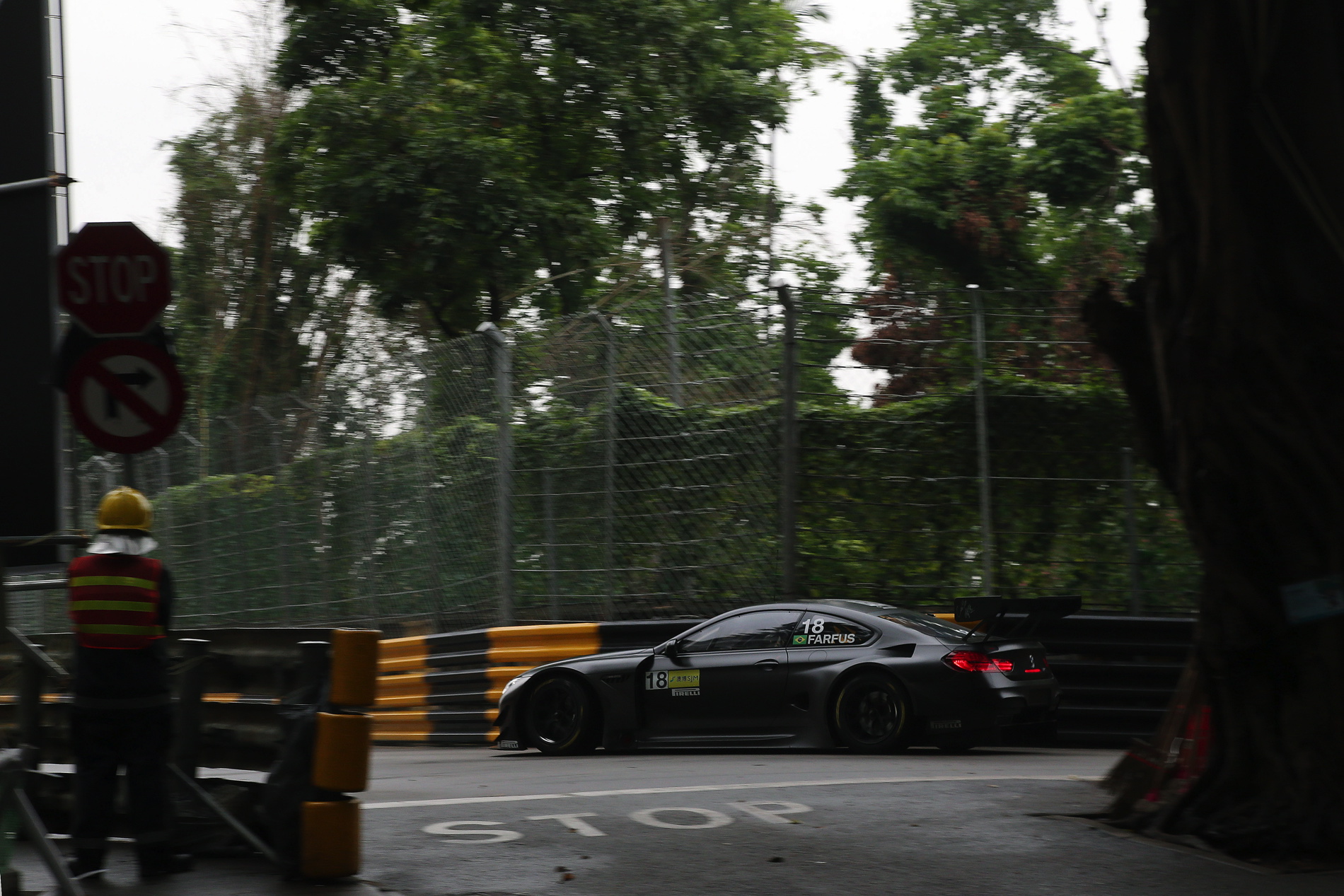 The race started behind the safety car due to wet conditions, with Farfus in second place. When the FIA GT World Cup finally got going, the #18 BMW M6 GT3 was hit by a competitor. This caused serious damage to the rear bodywork, which threatened to tear off completely. Farfus had to head for the pits, where the crew removed the loose boot cover. The BMW Art Car returned to the race in last place. Farfus showed real fighting spirit to make up lost ground and finish in fourth position.