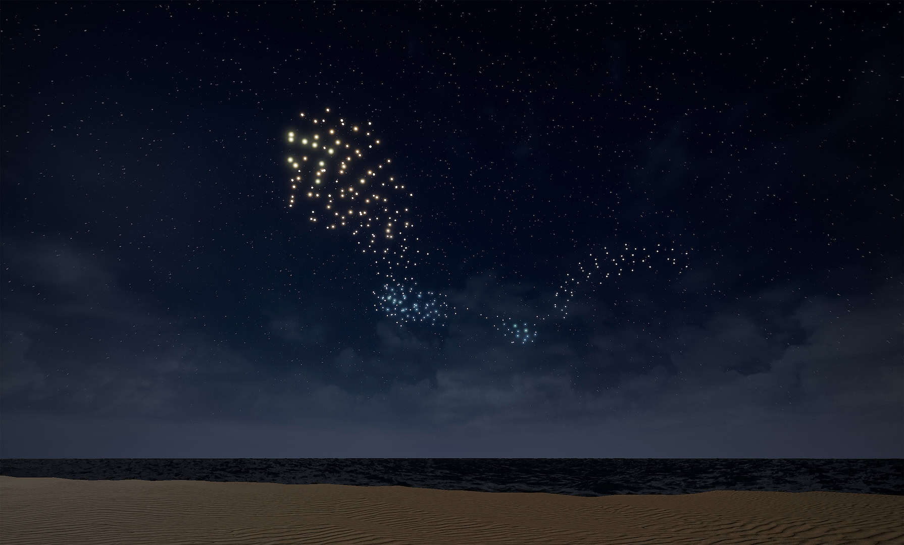 FRANCHISE FREEDOM – a flying sculpture by Studio Drift in partnership with BMW” is a performative artwork at the interface between technology, science, and art. An autonomous flying swarm of 300 drones, each equipped with a light source, will imitate the natural phenomenon of a flock on December 6, 9 PM on the beach of Miami above the sea between 32nd and 33rd Street off Collins Avenue behind the Faena Hotel Miami Beach.