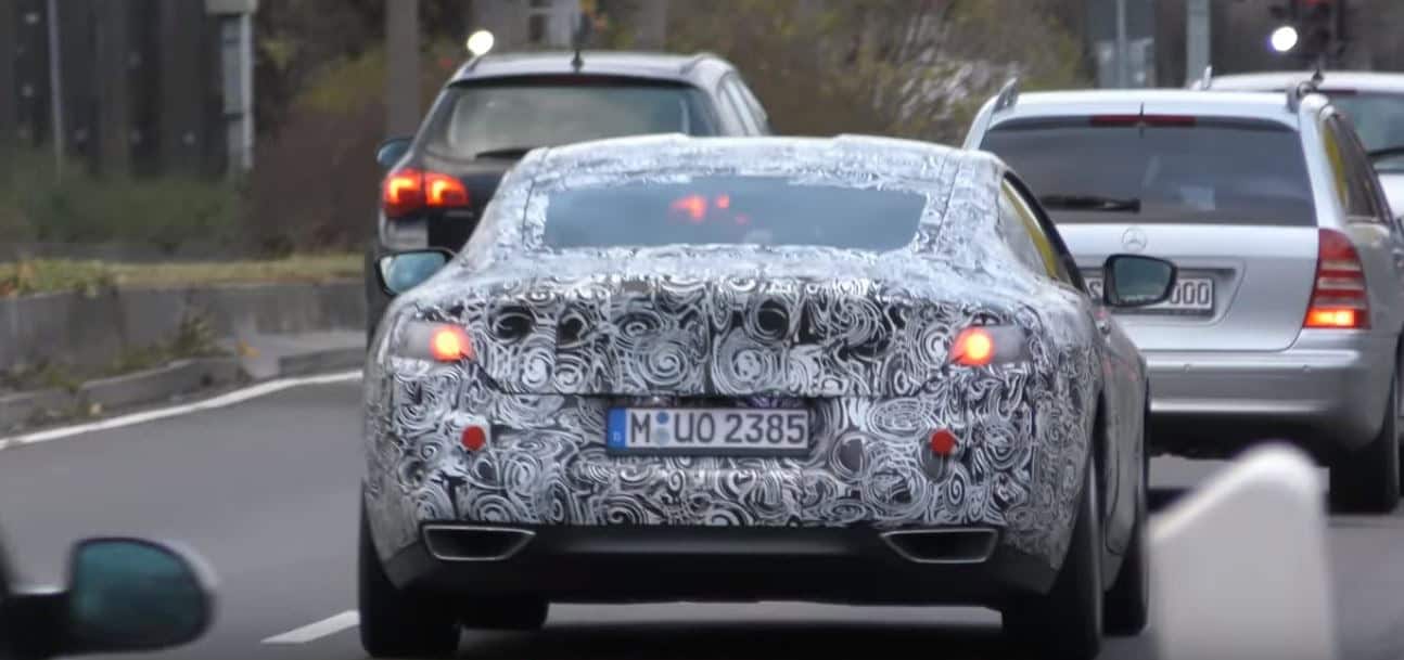 In the video below the car seems to be sitting quite low, especially when compared to the C-Class T-Modell driving in front of it. By the looks of things, the 8 Series will be just as low as the 6 Series it replaces but, at the same time, it may also be wider in the hips. Of course, this assumption can be wrong at the moment, as test vehicles are usually wearing fake plastic body panels that throw us off the scent. But even when taking that into account, the 8er in the shots below still seems wider than the norm.