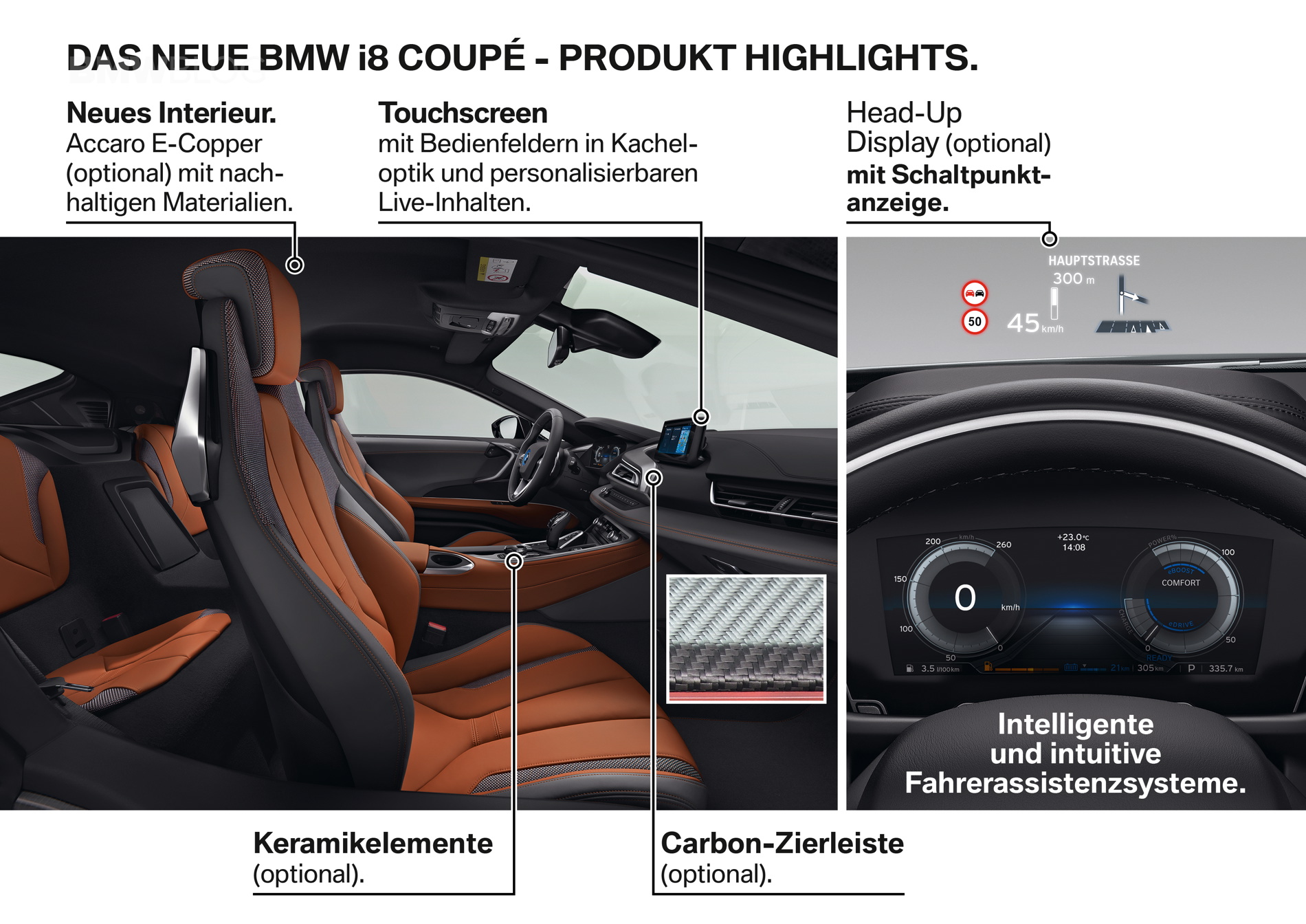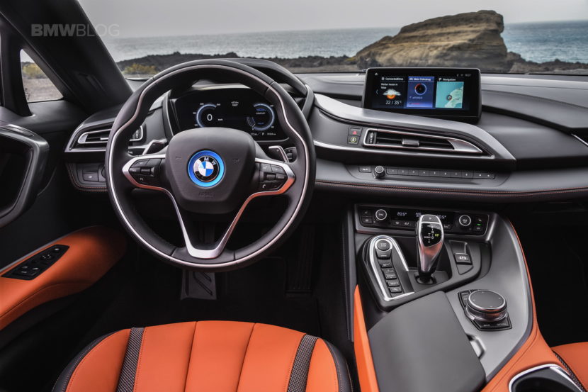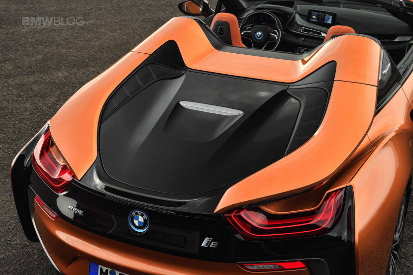 Speaking of power and performance, the BMW i8 Roadster won’t really have any more of either. Its 1.5 liter turbocharged three-cylinder engine remains unchanged, so it still makes 228 hp and 236 lb-ft and is mated to an electric motor and six-speed automatic gearbox, powering the rear wheels. While an electric motor powers the front wheels, thus giving it real-time torque-vectoring all-wheel drive. The latter motor makes 141 hp and 184 lb-ft of torque, up only slightly from the non-LCI BMW i8. So 0-60 mph happens in about the same 4.2 seconds. BMW claims there’s no performance penalty with the Roadster.