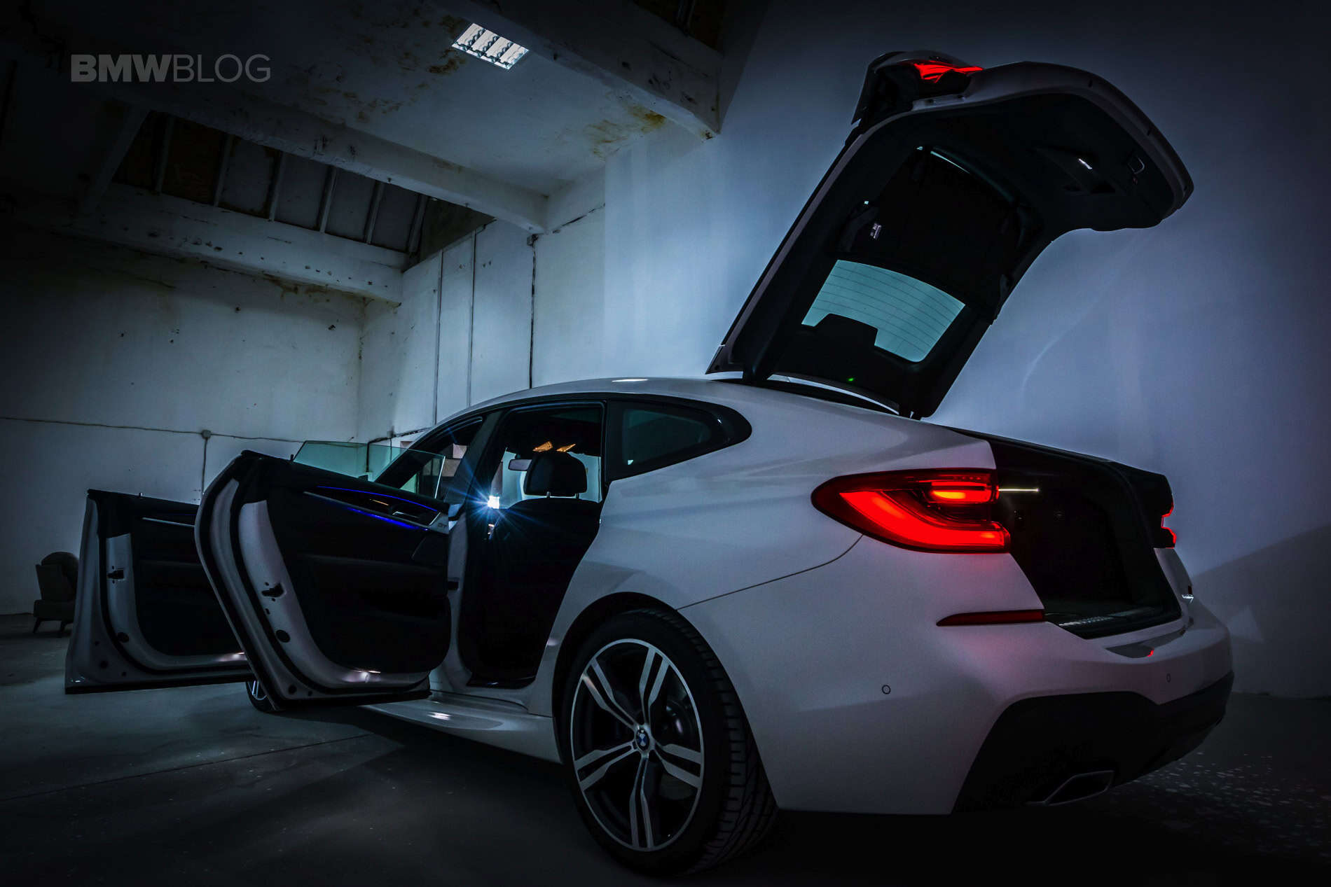 Another thing you might want to remember when driving or parking the 6 Series GT is the high-rising tailgate. With the boot open, the rear end of the car looks like a hippo with its mouth open, allowing you to stow away all your stuff thanks to the flat floor and the secret storage bins underneath it. On the end of the tailgate you’ll also find an active wing that raises at speeds over 100 km/h (62 mph) for more stability on the road.