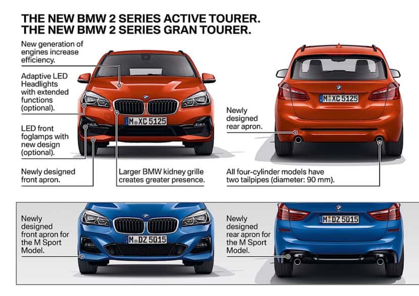 BMW released the full info on the subtly revised BMW 2 Series Active Tourer and Gran Tourer models today, showing prospective customers what to expect once the car reach the first dealerships. The two MPVs are now entering their fourth year in production so a small update was due, especially since they are seriously popular in Western Europe where BMW is apparently selling them like hot cakes. The new versions will go on sale starting this March.