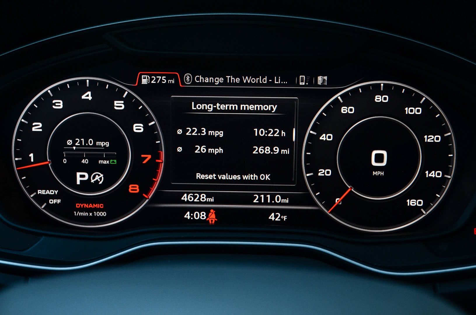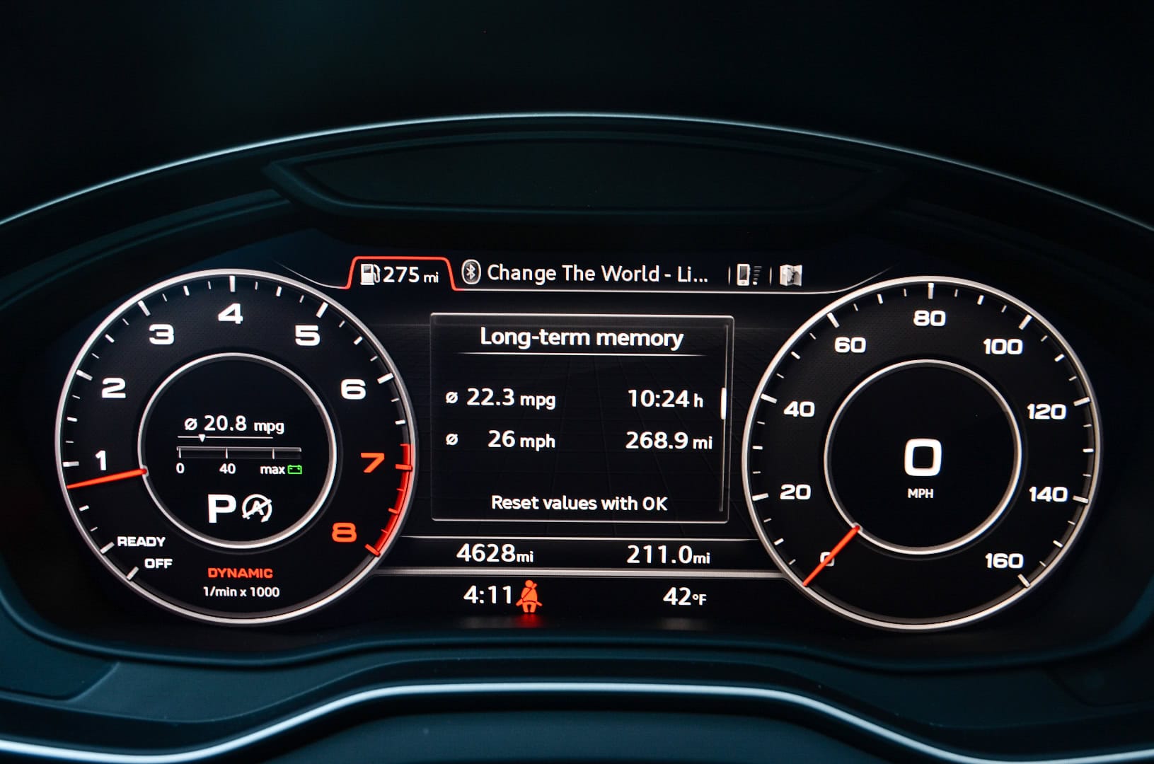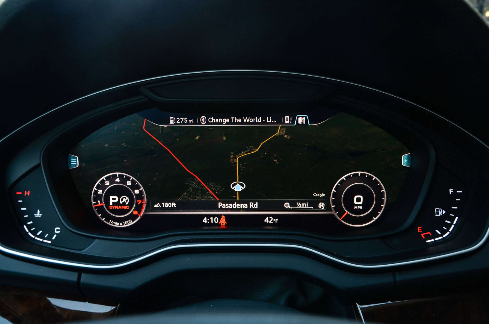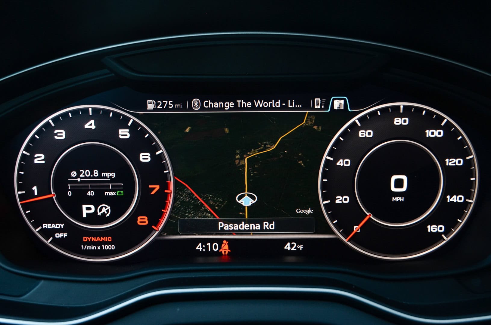 Which leads me to the Virtual Cockpit, Audi’s now-famous digital gauge cluster. It’s superb to use and is easily the best digital instrument panel in the business. You can switch from two different views, one with more traditional looking dials and a small screen in between or two really small dials and a massive screen in between. It can also display full-screen Google Earth imagery of where you are and your navigation information. It’s incredibly intuitive and easy to use, as you never have to avert your eyes from the road anymore than you would to normally check your speed. With the optional head-up display, it’s even easier.