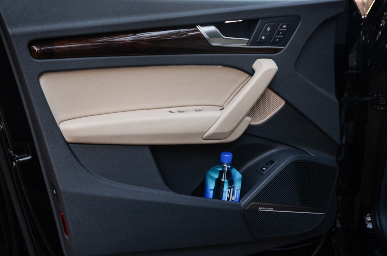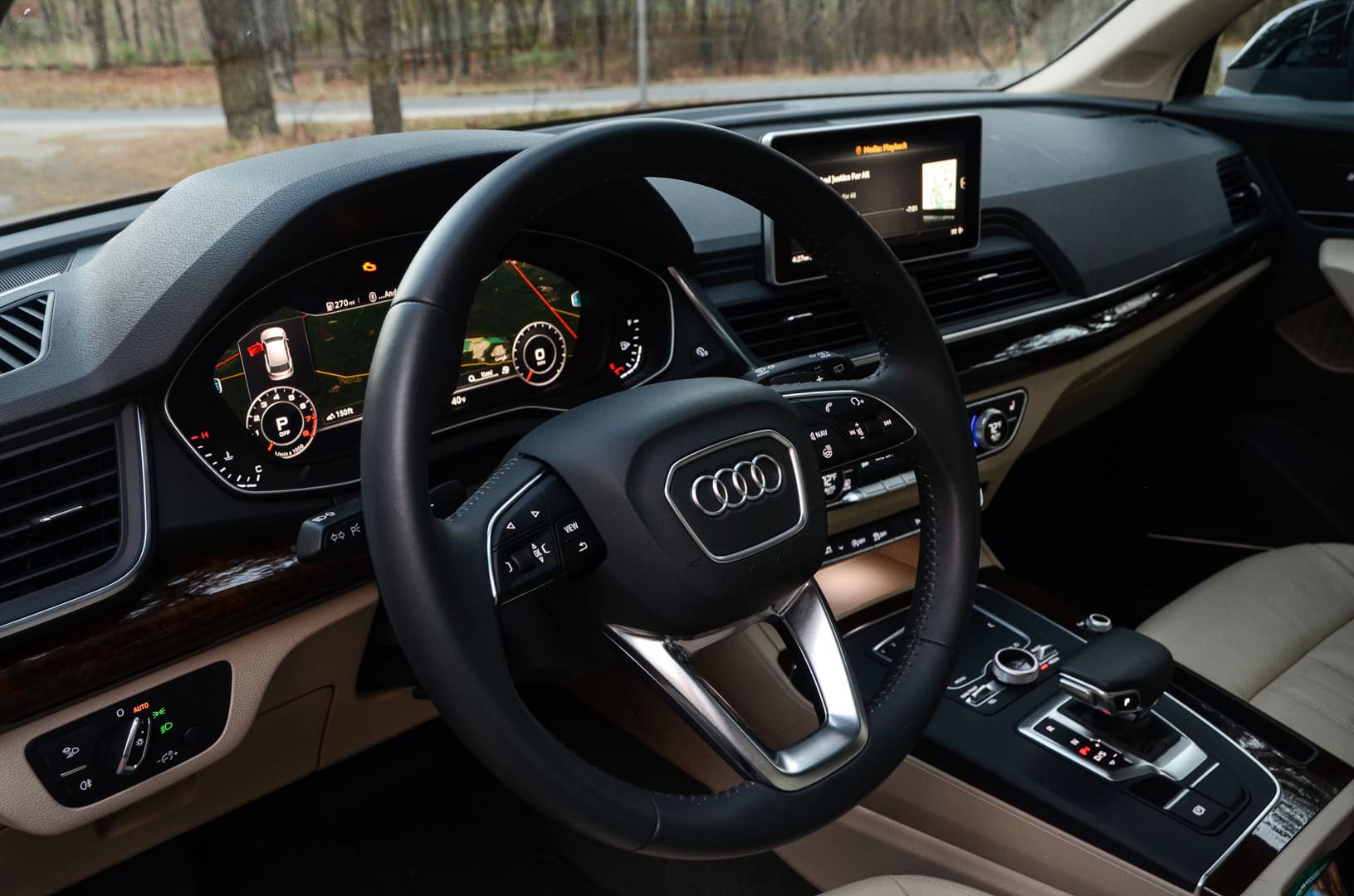 The attention to detail is also remarkable. Almost everything that looks like metal is metal and every single knob in the car is knurled, even the faux cigarette lighter plug. Little touches like that make the Q5’s cabin feel special and more expensive than it is. Though, there are some curiosities about material choices. For instance, while every knob possible is knurled and beautiful, the steering wheel paddle shifters are plastic and can feel a bit cheap. Having said that, the steering wheel itself is really nice to hold, is wrapped in high-quality leather and is the right size and shape. Also, all of the steering wheel buttons are ergonomic, laid out perfectly and really intuitive to use.