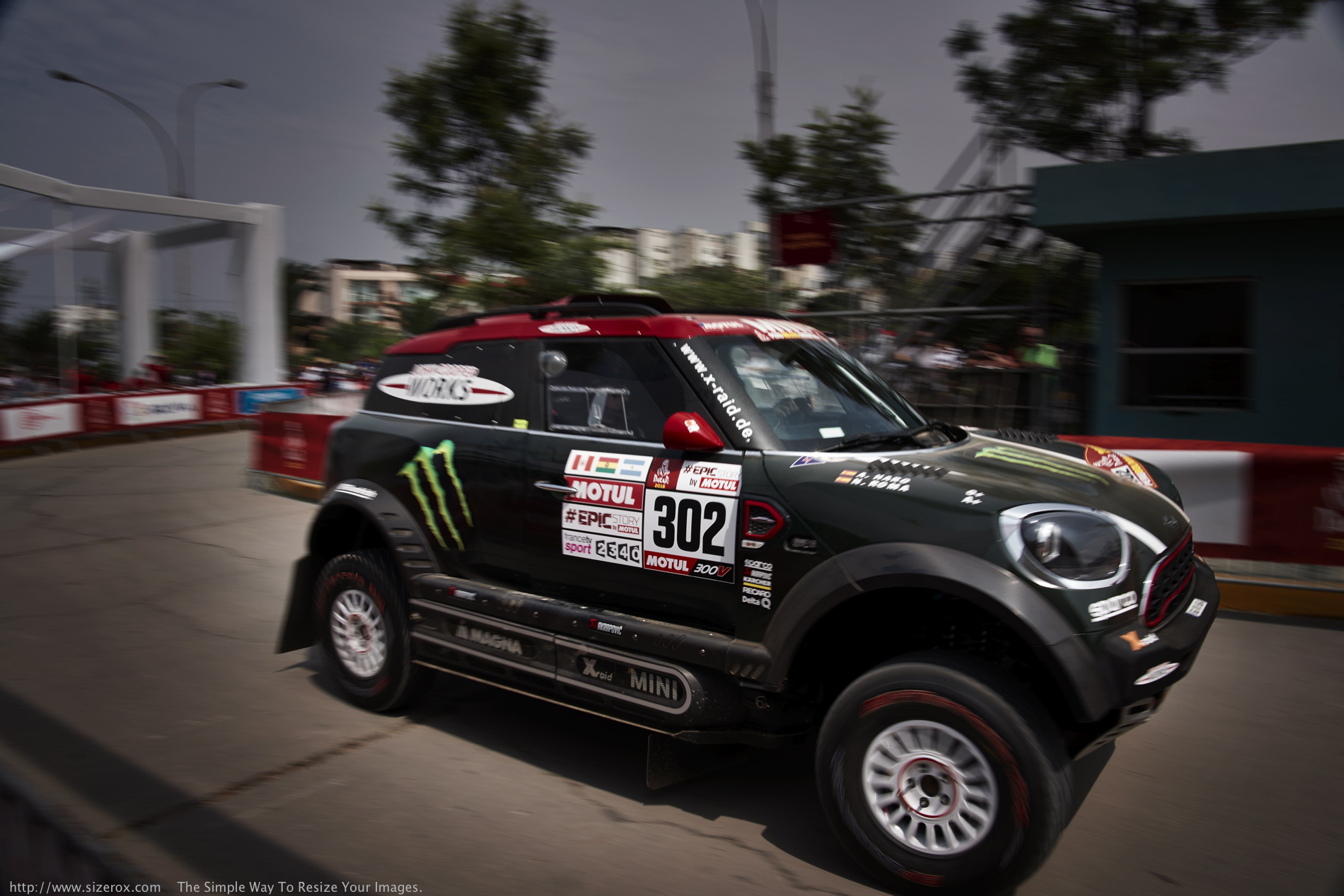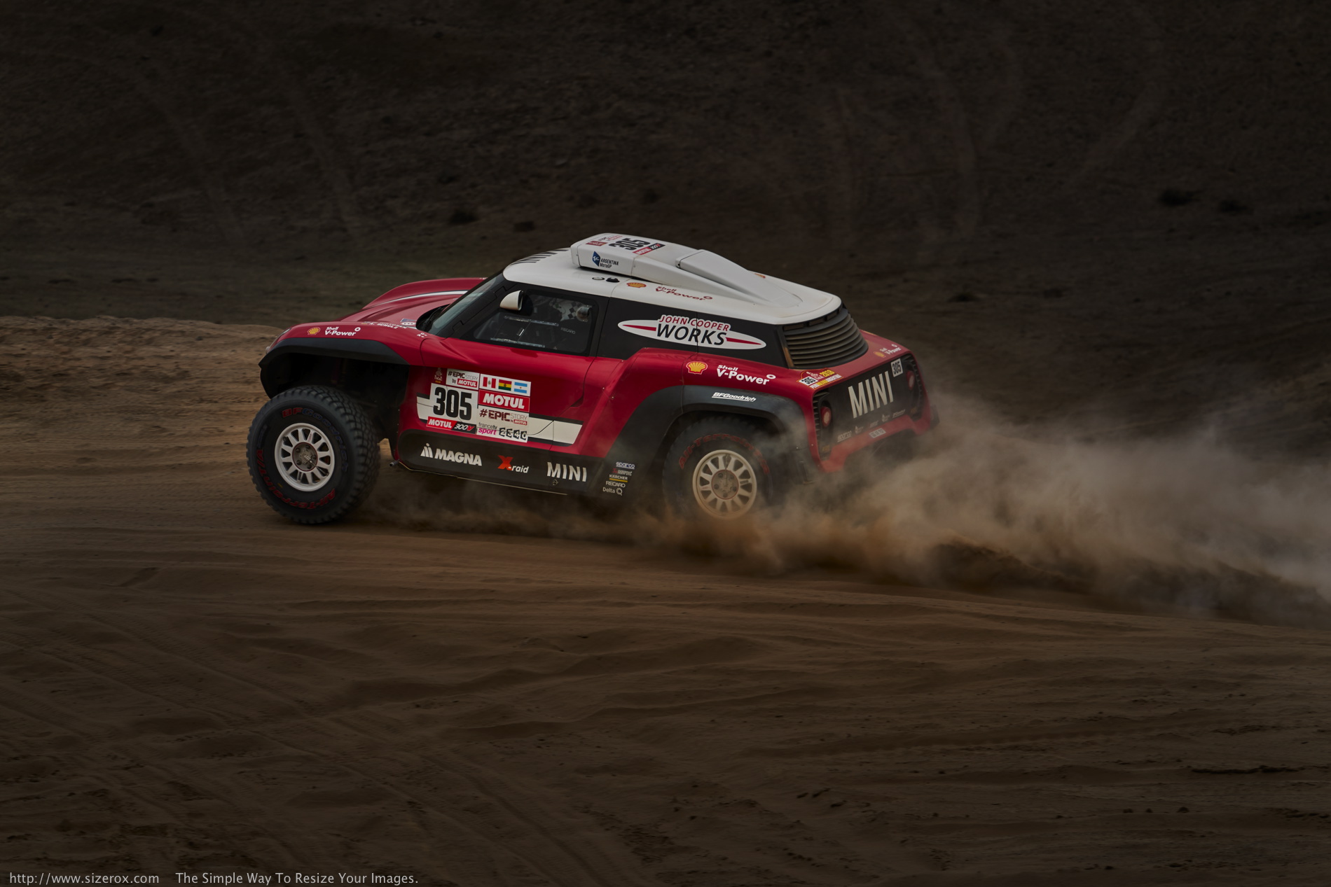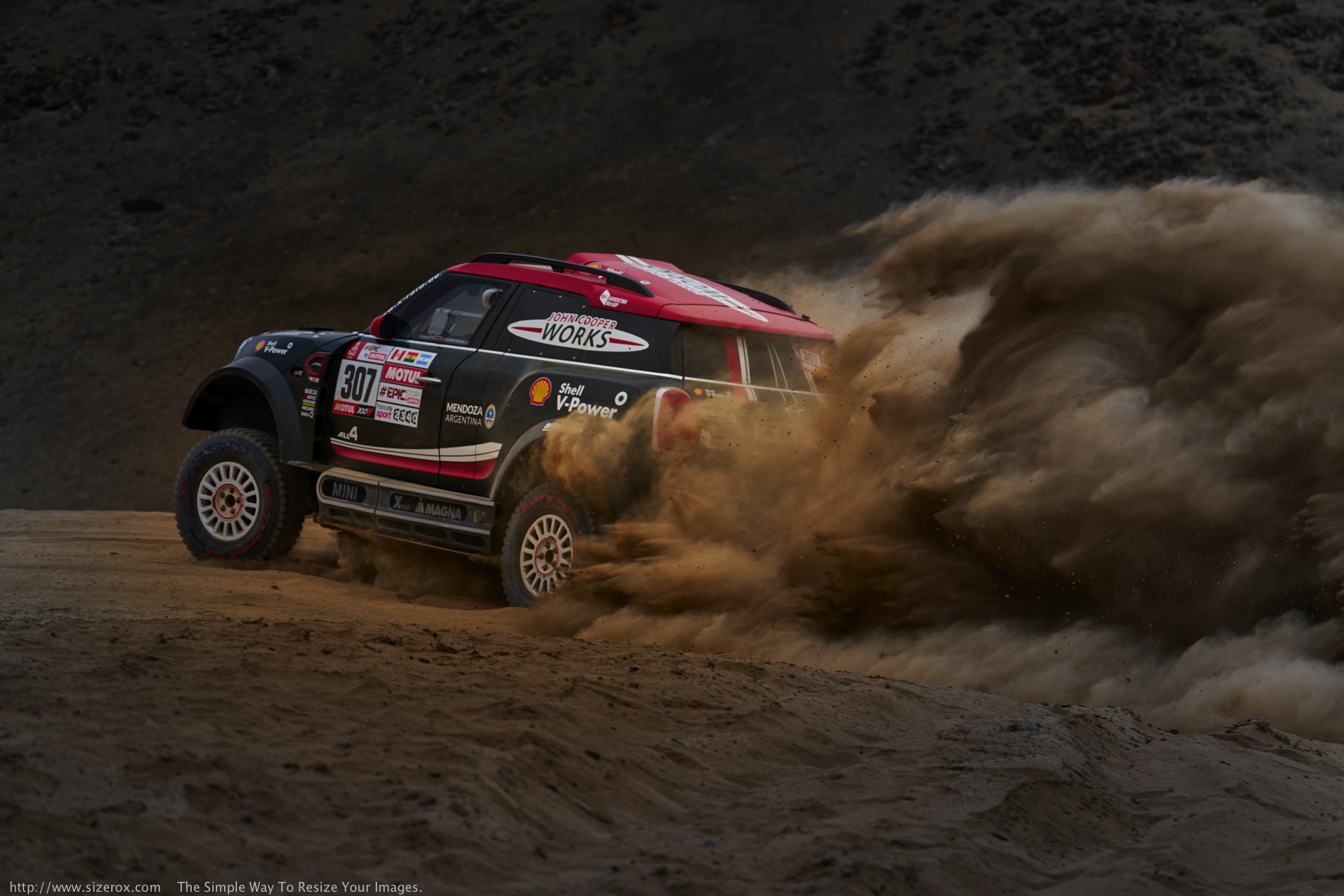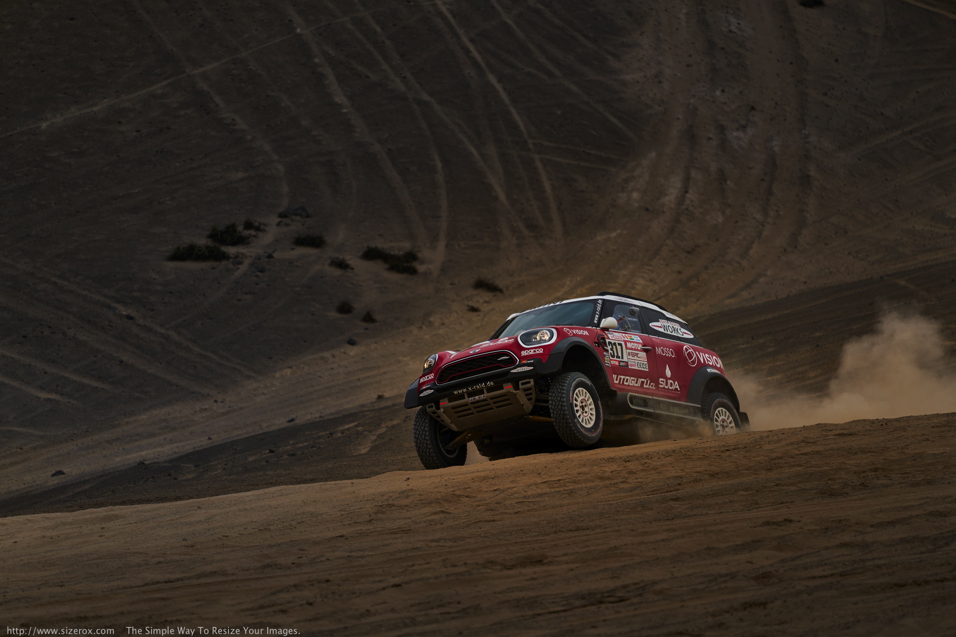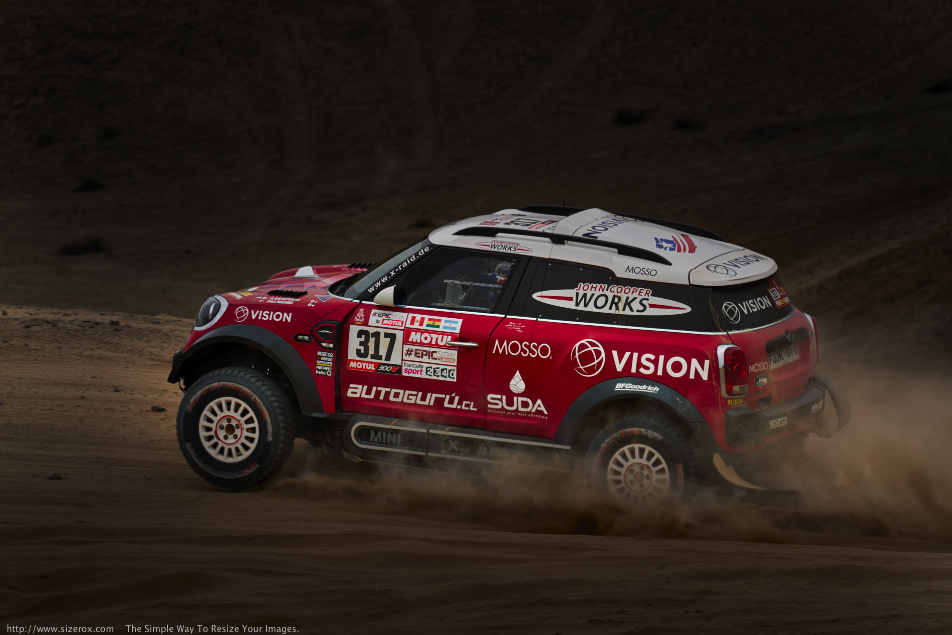We jumped back into our front-wheel drive Countrymans and headed out to the desert, for another truly MINI experience. This time navigating the off the map, narrow sandy roads south of Pisco. After a true off-road experience which involved a Police bus blocking the road, allegedly involuntarily, we arrived at the Stage 2 checkpoint where we positioned ourselves in the long straight to see the Dakar cars flying through.