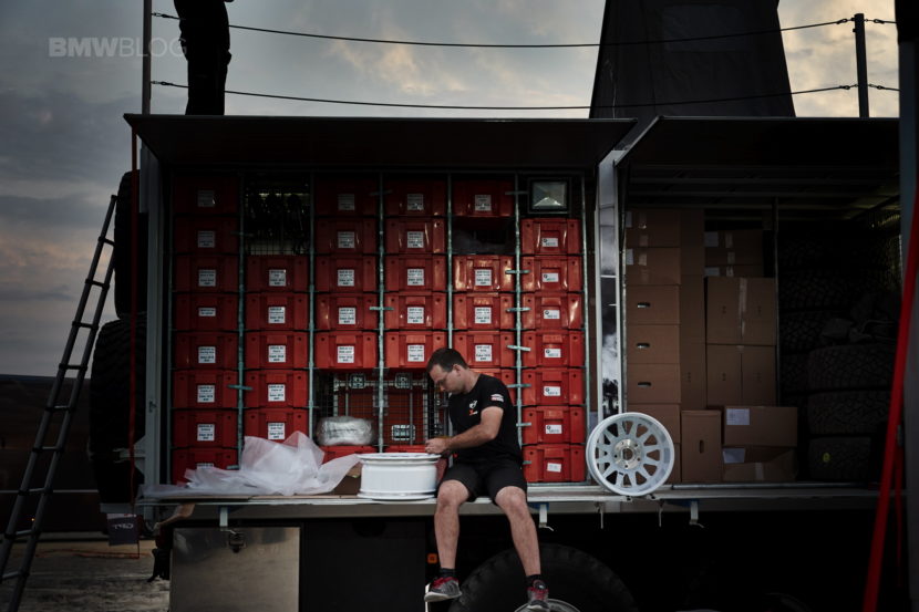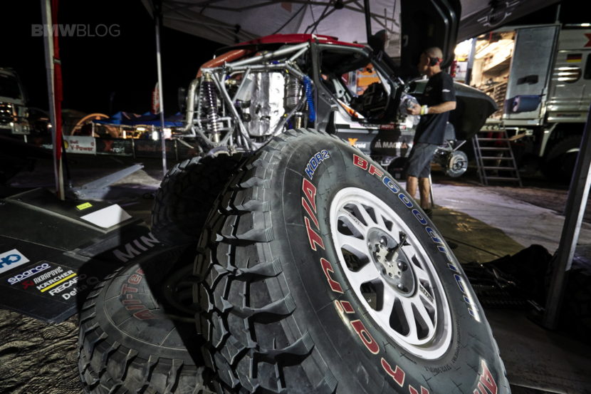 Brakes and tires are changed daily, regarding of their wear and tear. 44 tires for the Buggy and 65 tires per car for the ALL4 MINI.