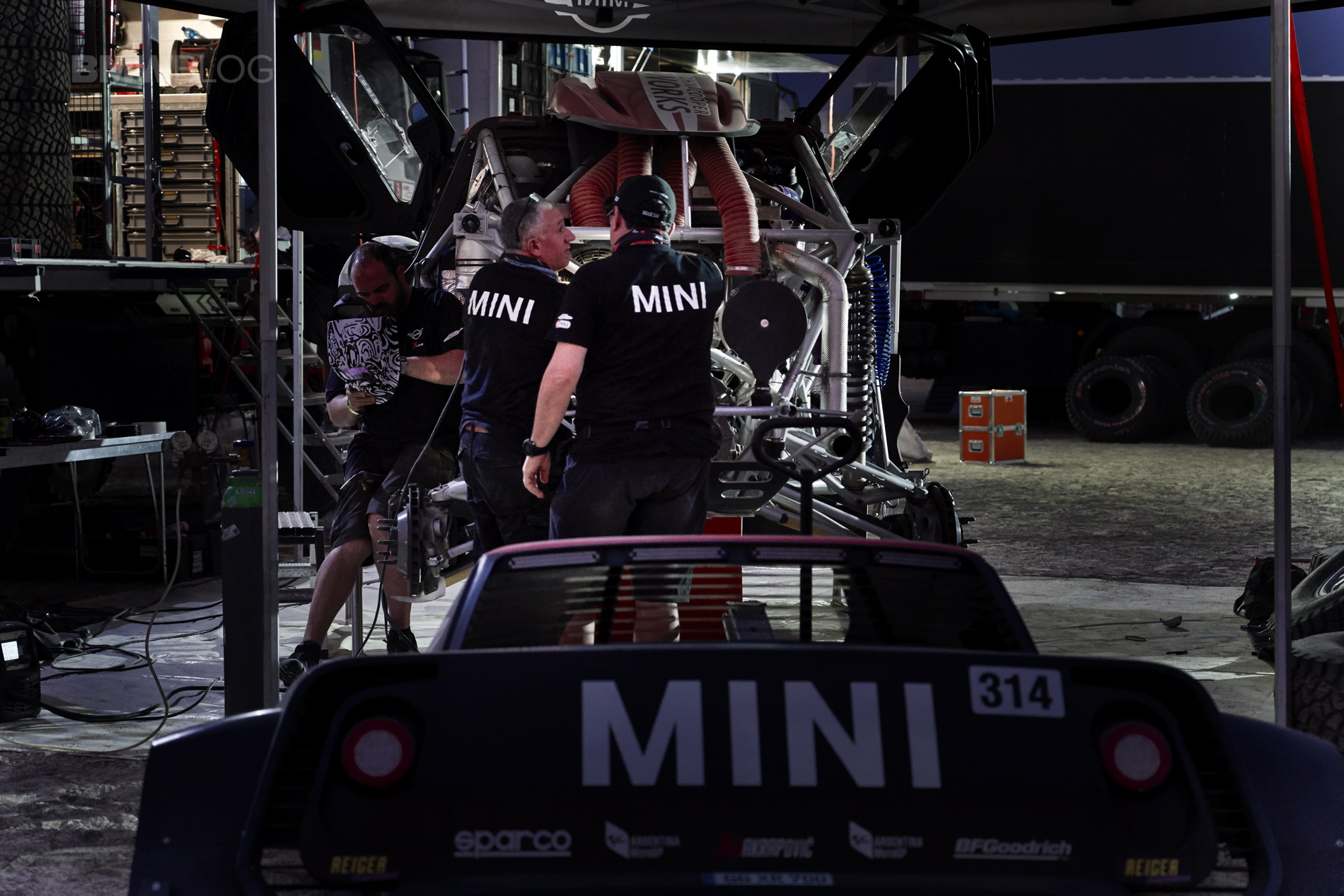 Every night, the X-Raid MINI team give each one of the seven cars a 2 to 4 hours inspection. It takes roughly 30 minutes to fully disassemble the MINI Countryman ALL4 and less time for the MINI Buggy. There are 150 people servicing the seven rally cars.