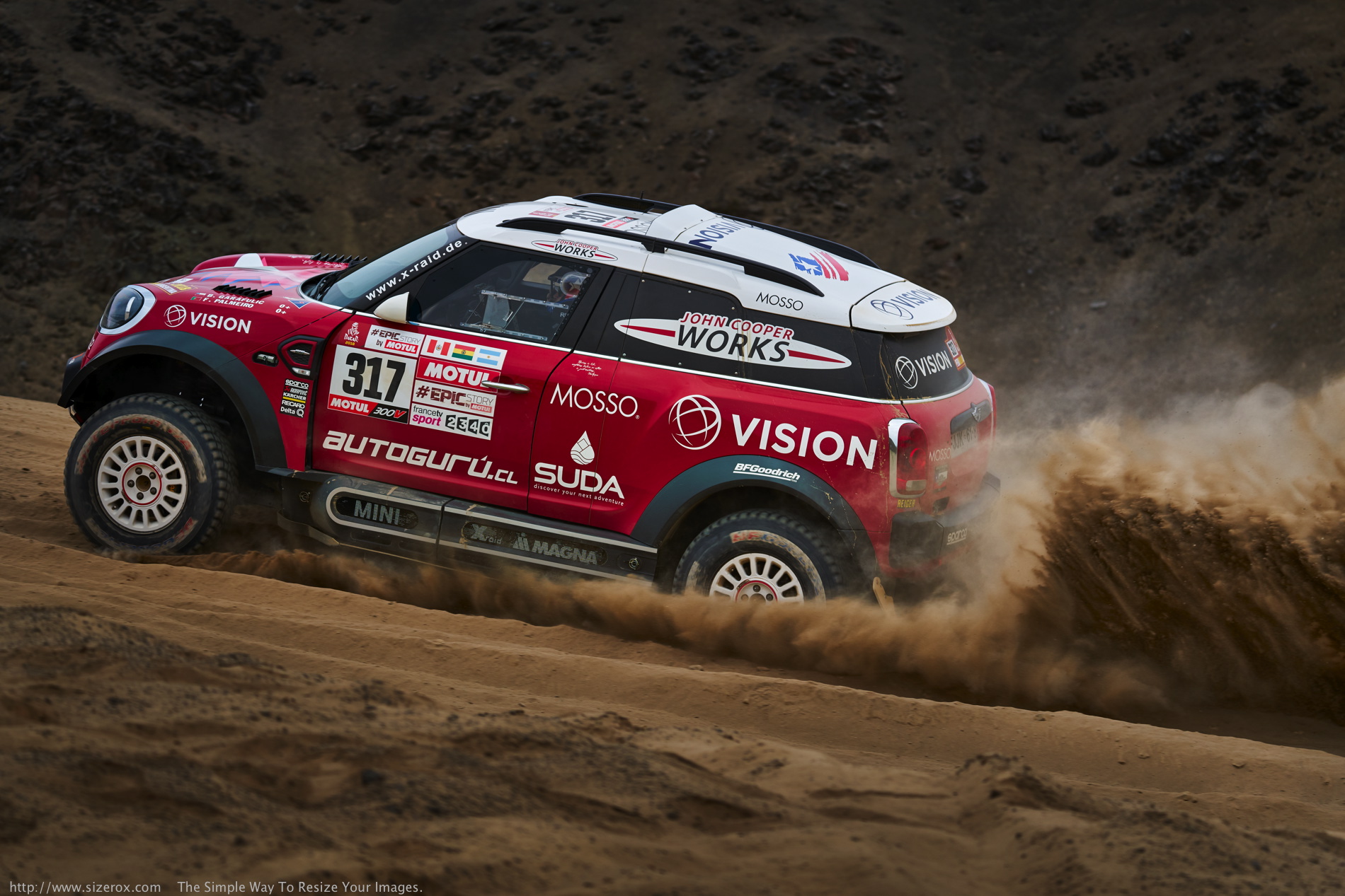 The anniversary edition of the long-distance rally takes the rally participants from Peru to Argentina via Bolivia and incorporates extended desert stages as well as rock and boulder fields and asphalt tracks which take the cars up to an altitude of 4000 meters in the Andes.